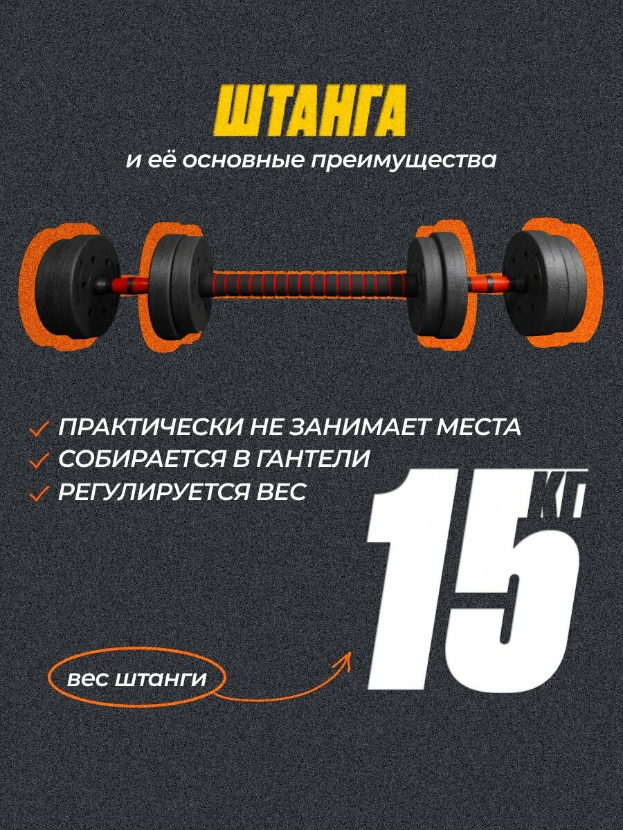 Штанга-трансформер BARFITS разборная 15кг (штанга 15кг или 2 гантели по 7,5кг) информация: