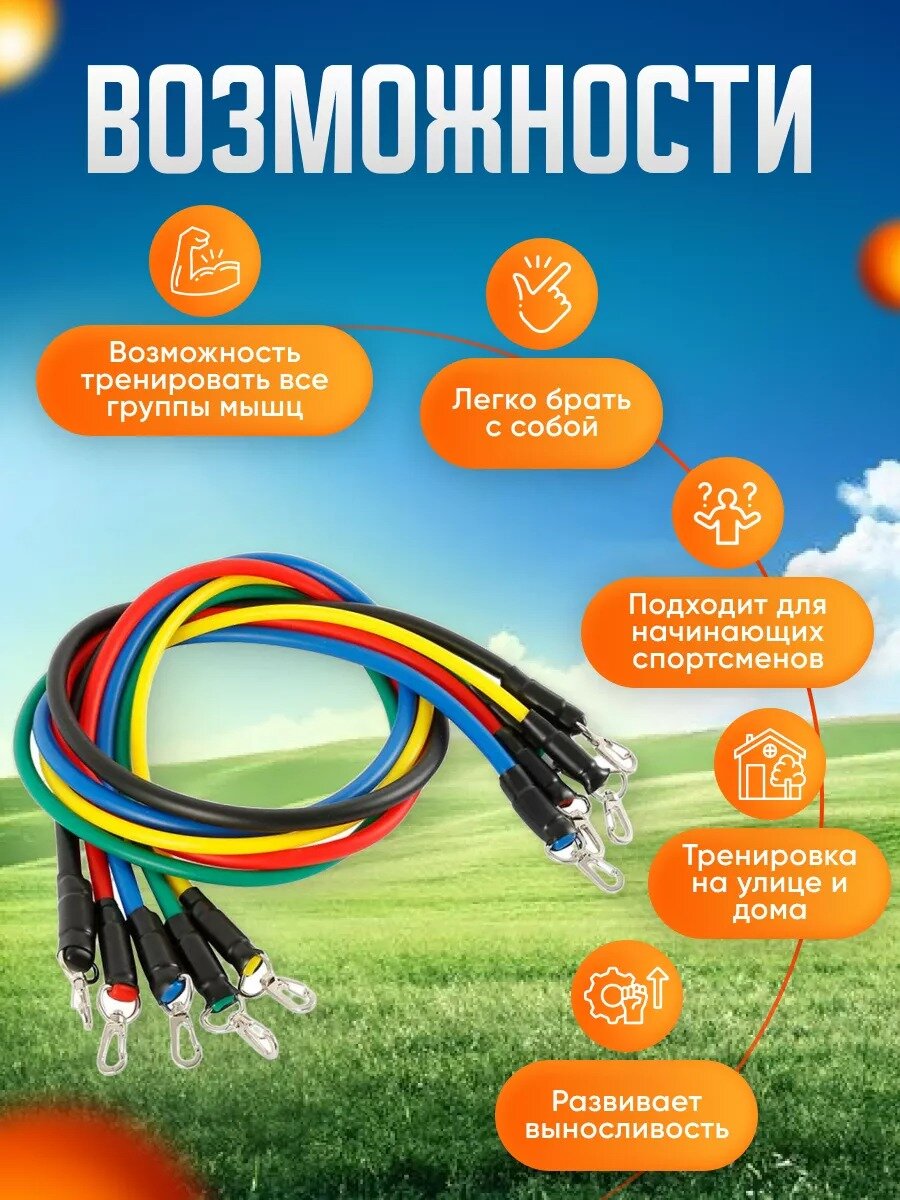 10 цен на Набор трубчатых эспандеров для фитнеса , Фитнес резинки 5 шт.