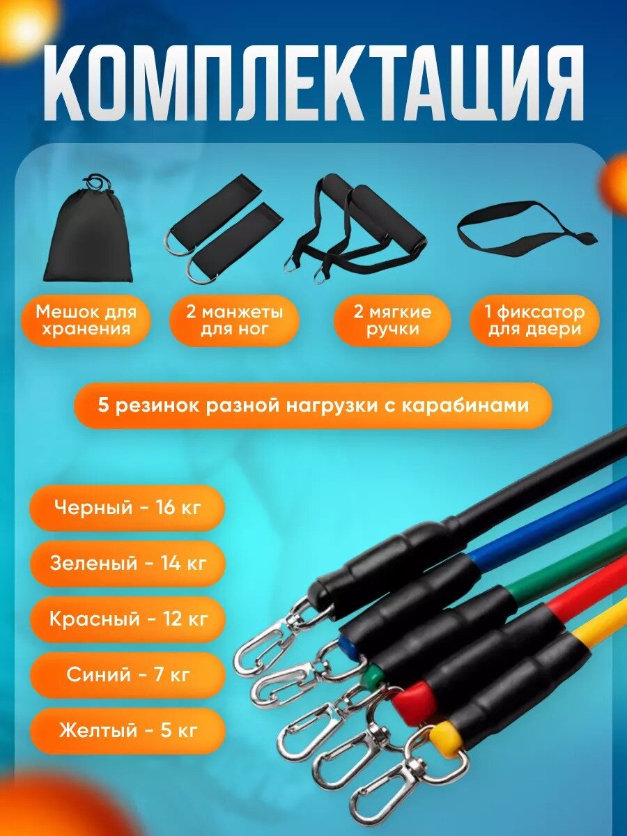 Набор трубчатых эспандеров для фитнеса , Фитнес резинки 5 шт. информация: