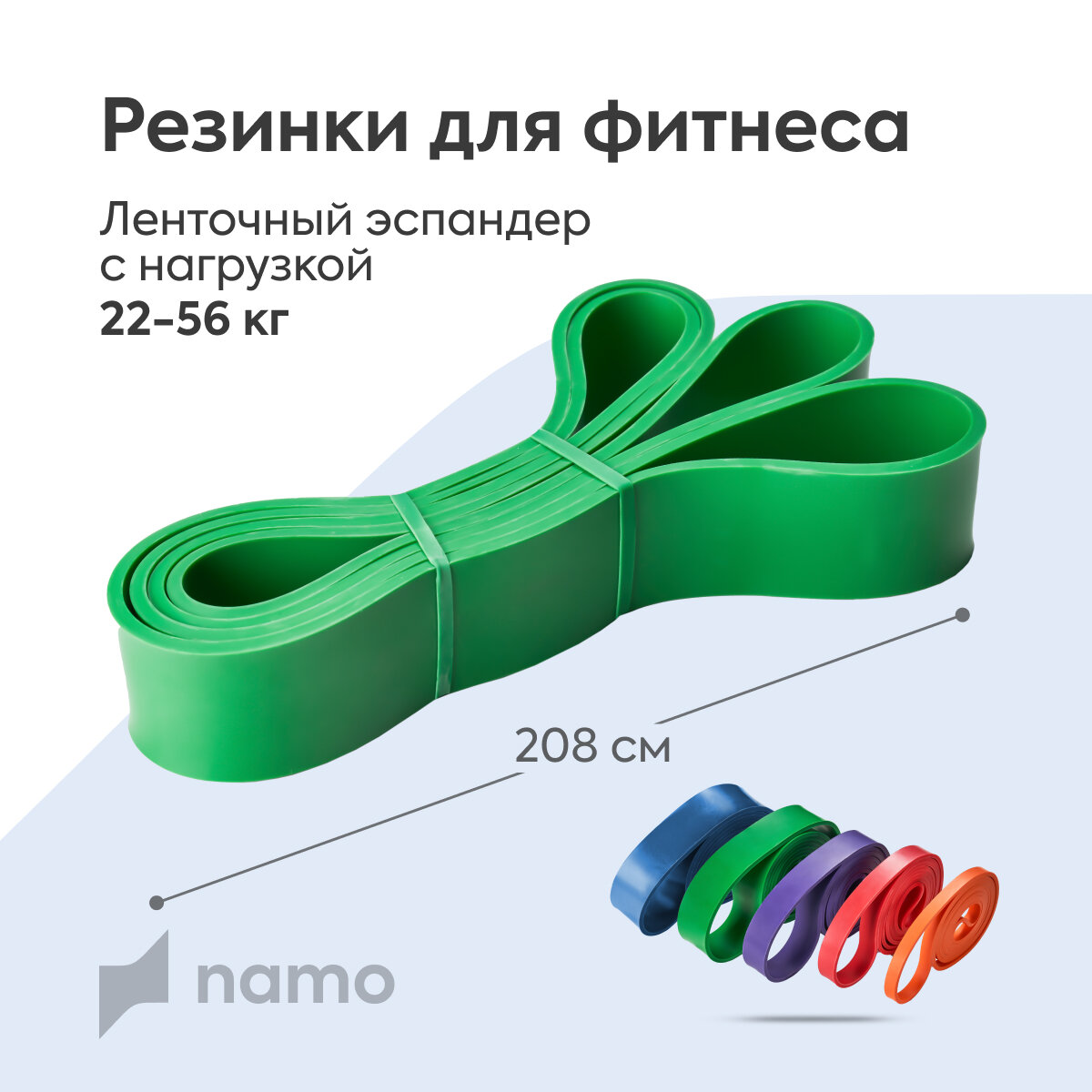 10 цен на Силовая резинка для фитнеса латексная, эспандер ленточный 4.5 см x 208 см, 22 - 56 кг