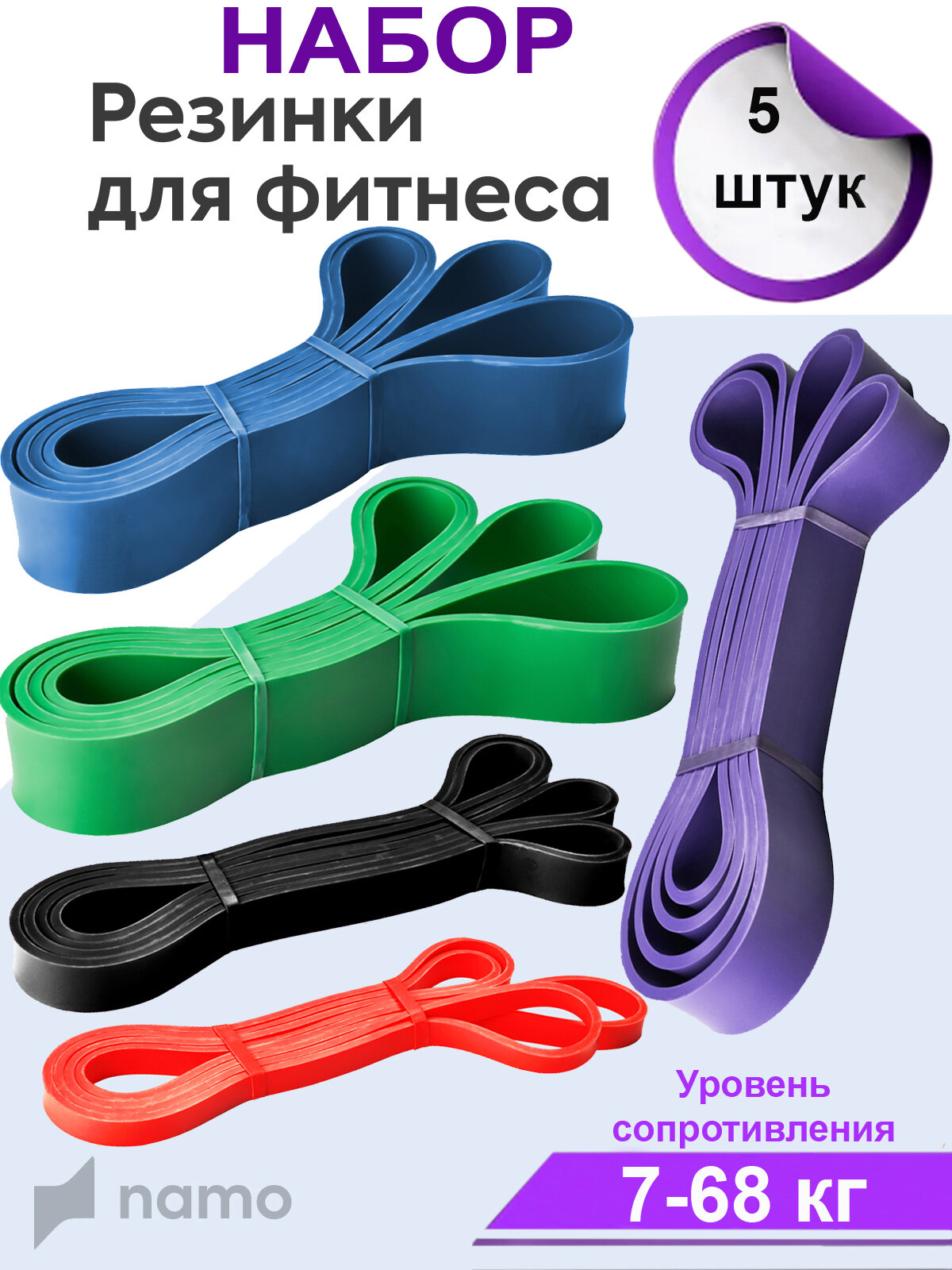 Набор Силовые резинки для фитнеса латексные 5 штук информация: