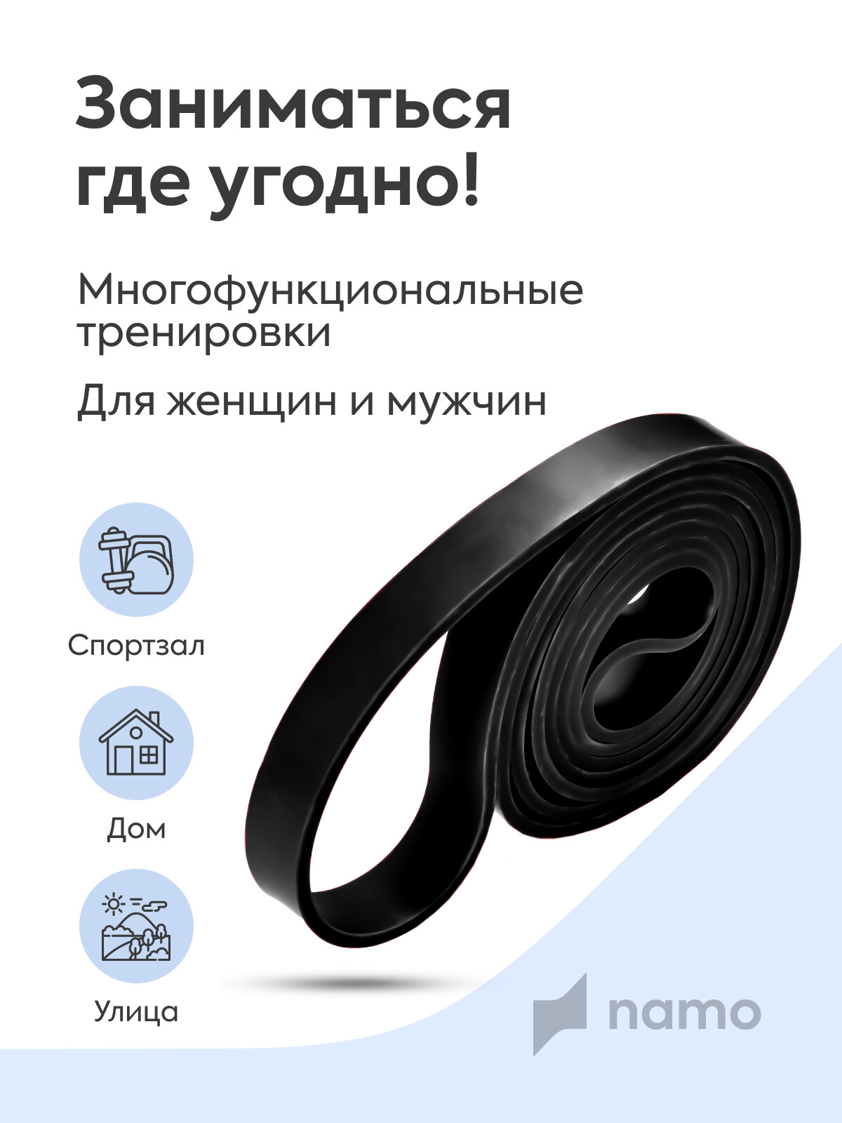 Отзывы на Силовая резинка для фитнеса латексная, эспандер ленточный 2.2 см x 208 см, 11 - 30 кг, черная