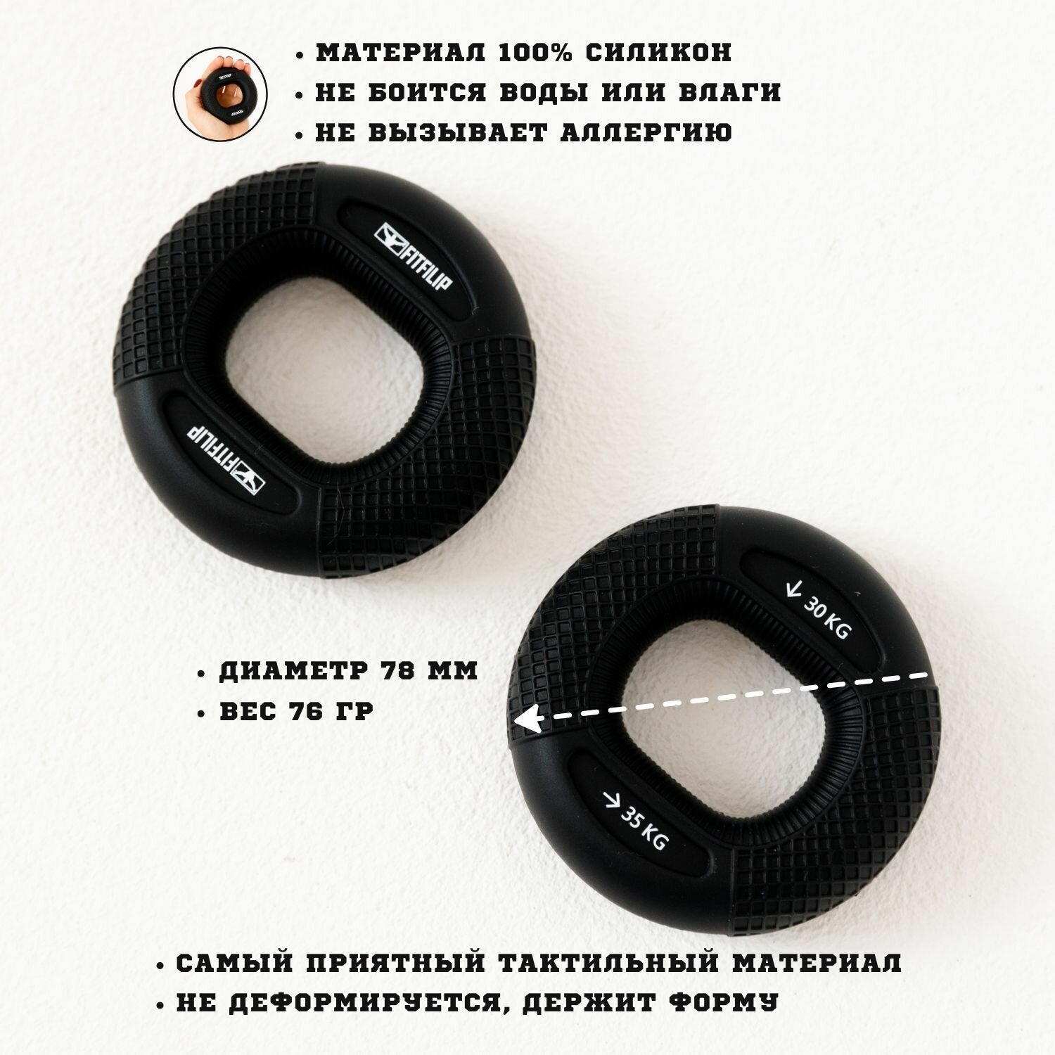Эспандер кистевой силиконовый круглый для рук кольцо 30-35кг информация: