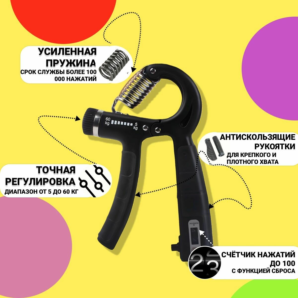 Эспандер кистевой пружинный для рук и пальцев со счетчиком нажатий информация: