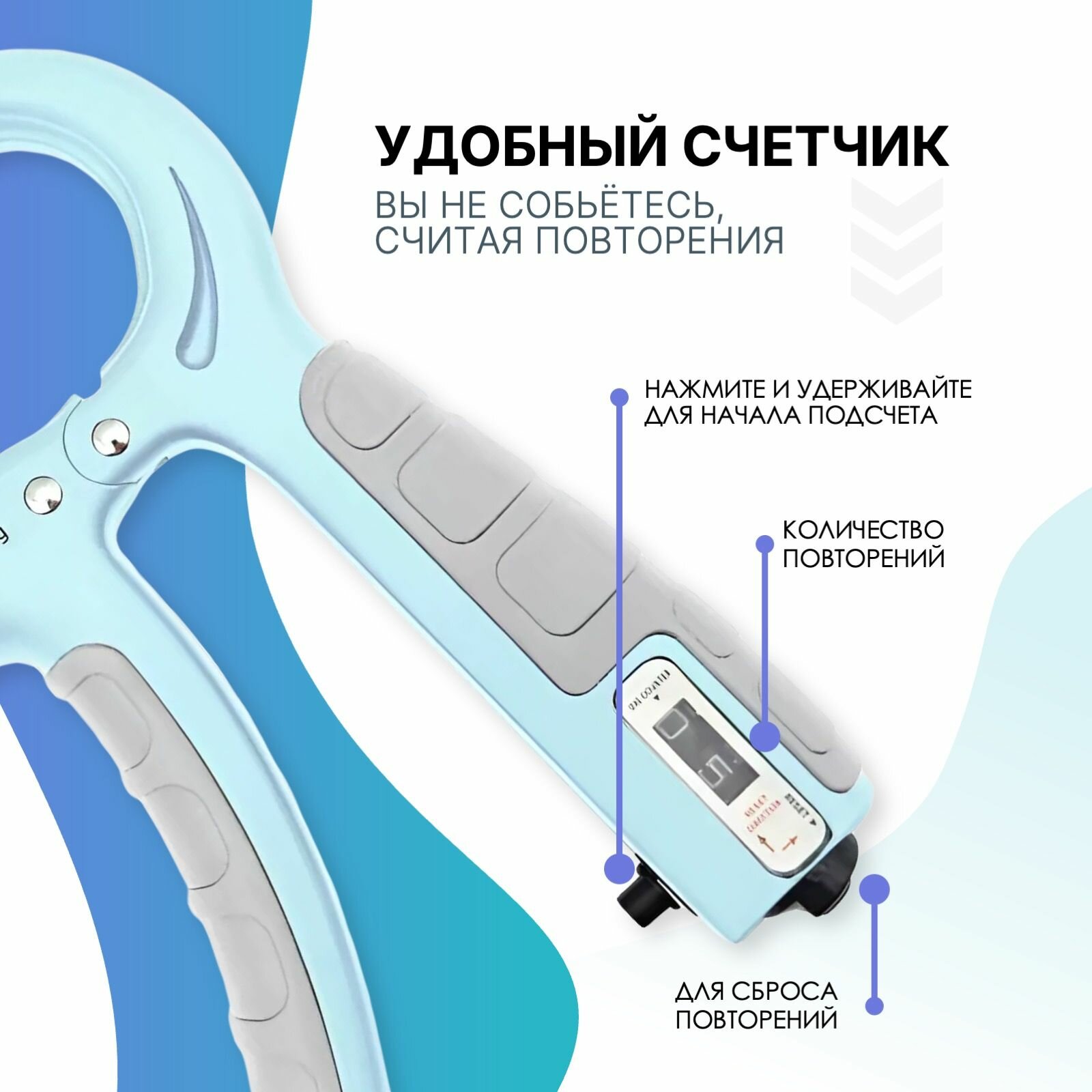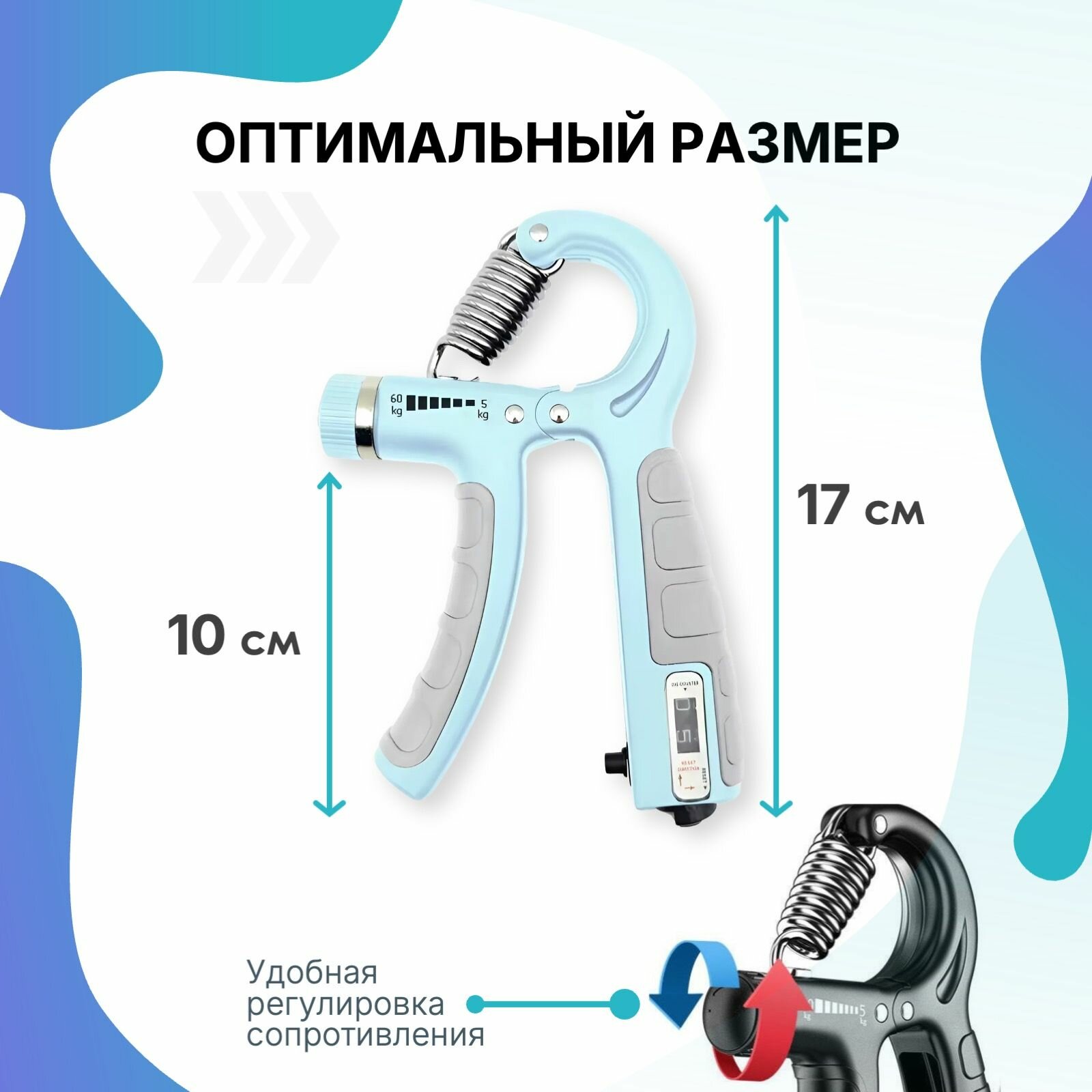 Эспандер кистевой с регулировкой нагрузки от 5 до 60 кг и с механическим счетчиком нажатий, для пальцев рук, предплечья, развития моторики. информация: