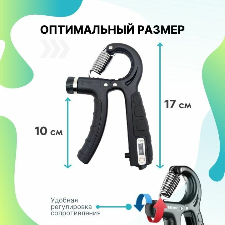 Эспандер кистевой с регулировкой нагрузки от 5 кг до 60 кг и с механическим счетчиком нажатий, для пальцев рук, предплечья, развития моторики. информация: