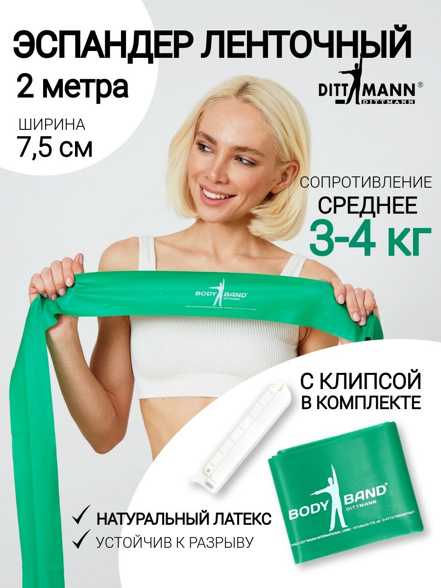 10 цен на Эспандер ленточный узкий / Лента для пилатеса и фитнеса DITTMANN Body-Band, длина 2 м, высокое сопротивление, зелёный