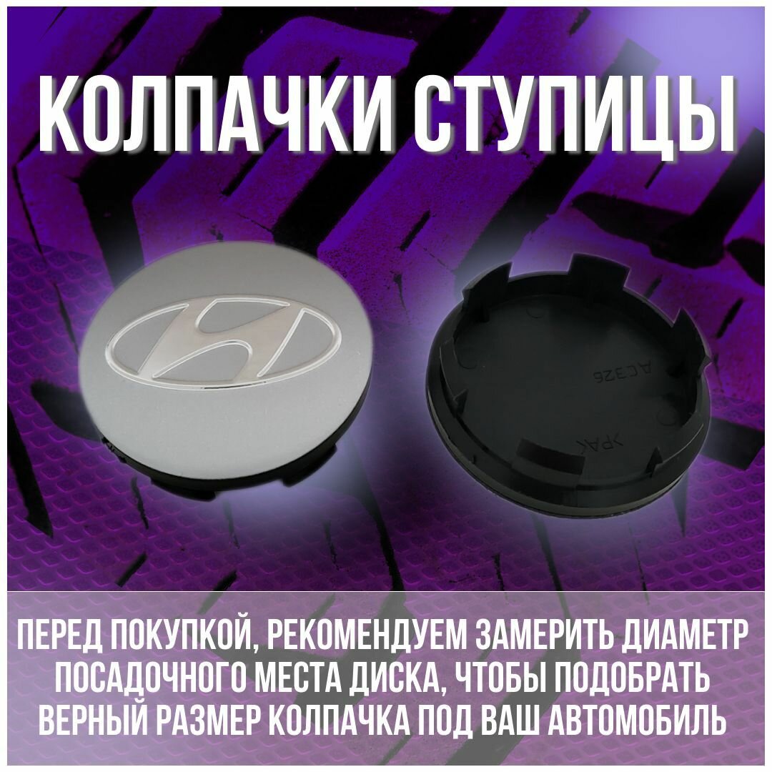 Ступичные колпачки / заглушки ступицы на литой диск Хендай / Hyundai хром, черный (60/55)