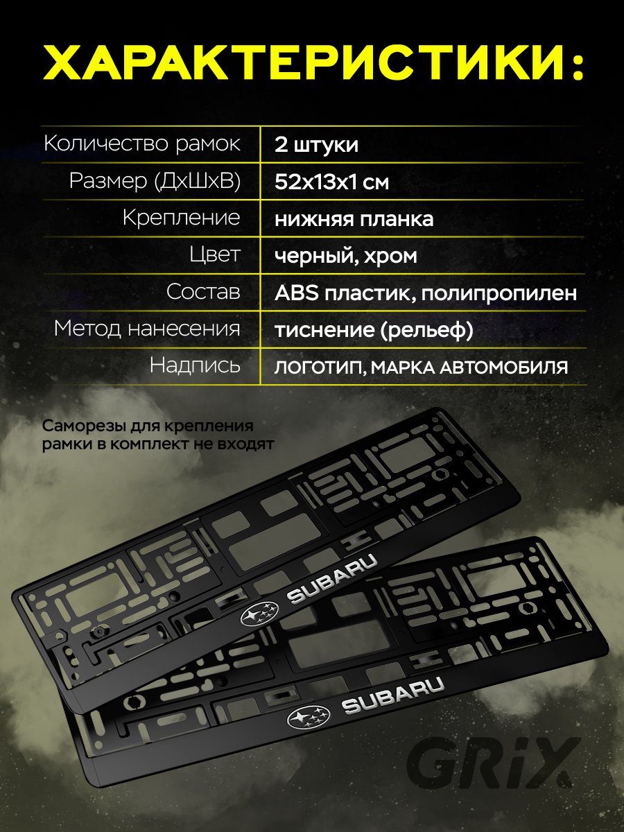 Grix Рамки автомобильные для госномеров с надписью "SUBARU" Набор - 2 шт. информация: