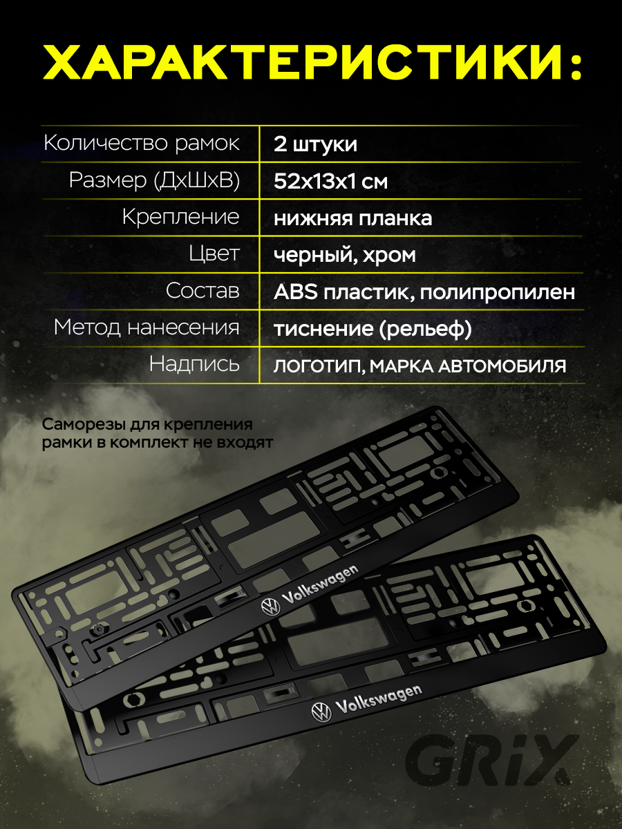 Grix Рамки автомобильные для госномеров с надписью "VOLKSWAGEN" Набор - 2 шт. информация: