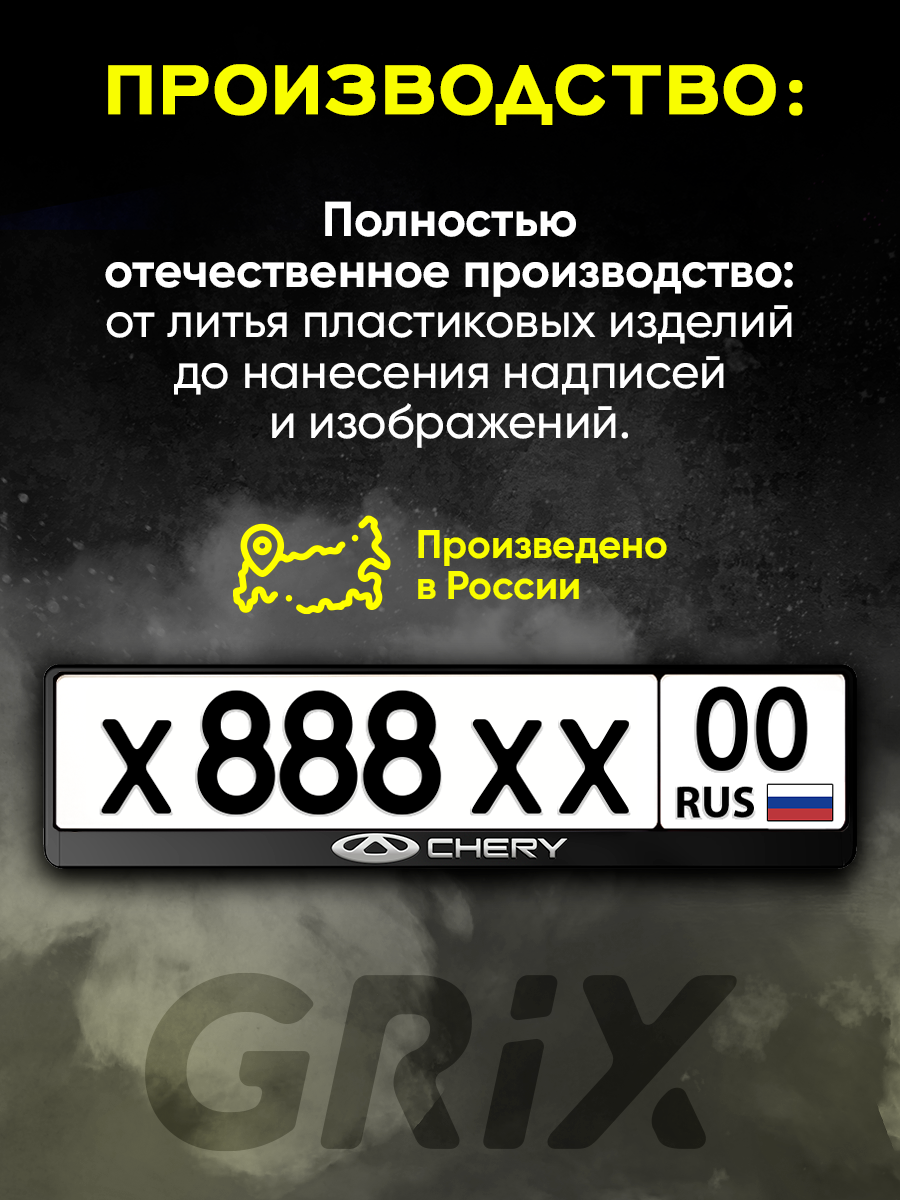 Grix Рамки автомобильные для госномеров с надписью "CHERY" 1 шт. информация: