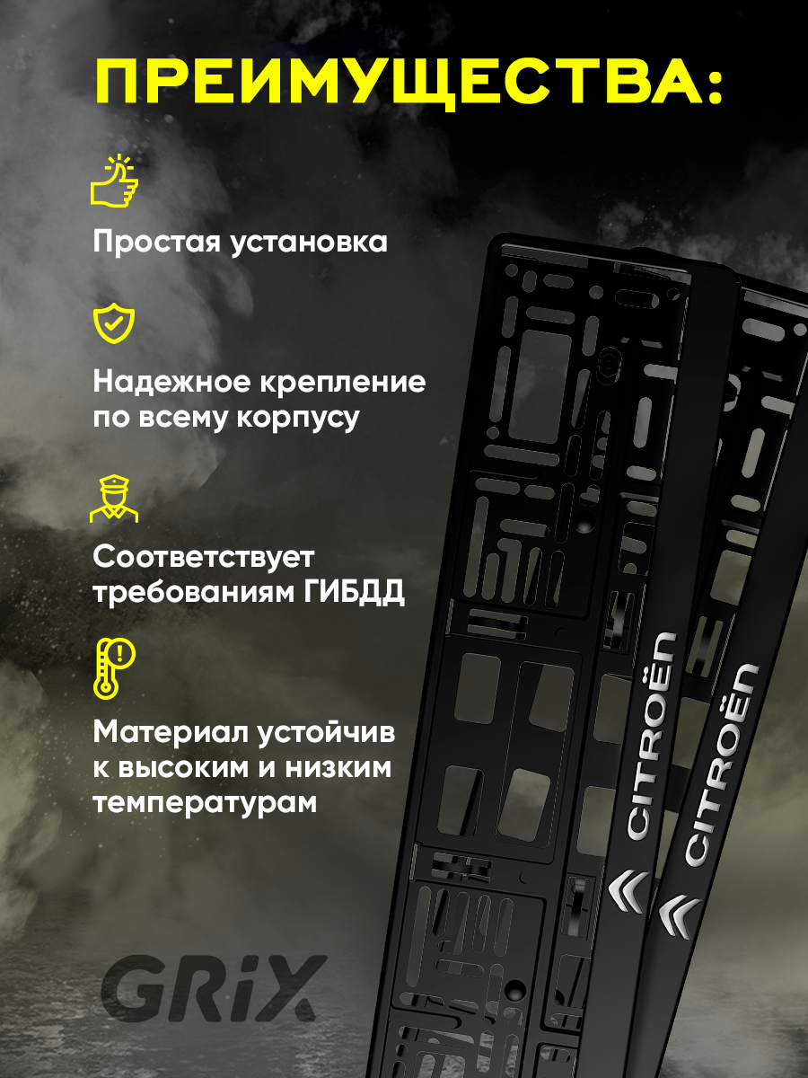Grix Рамки автомобильные для госномеров с надписью "CITROEN" Набор - 2 шт. информация: