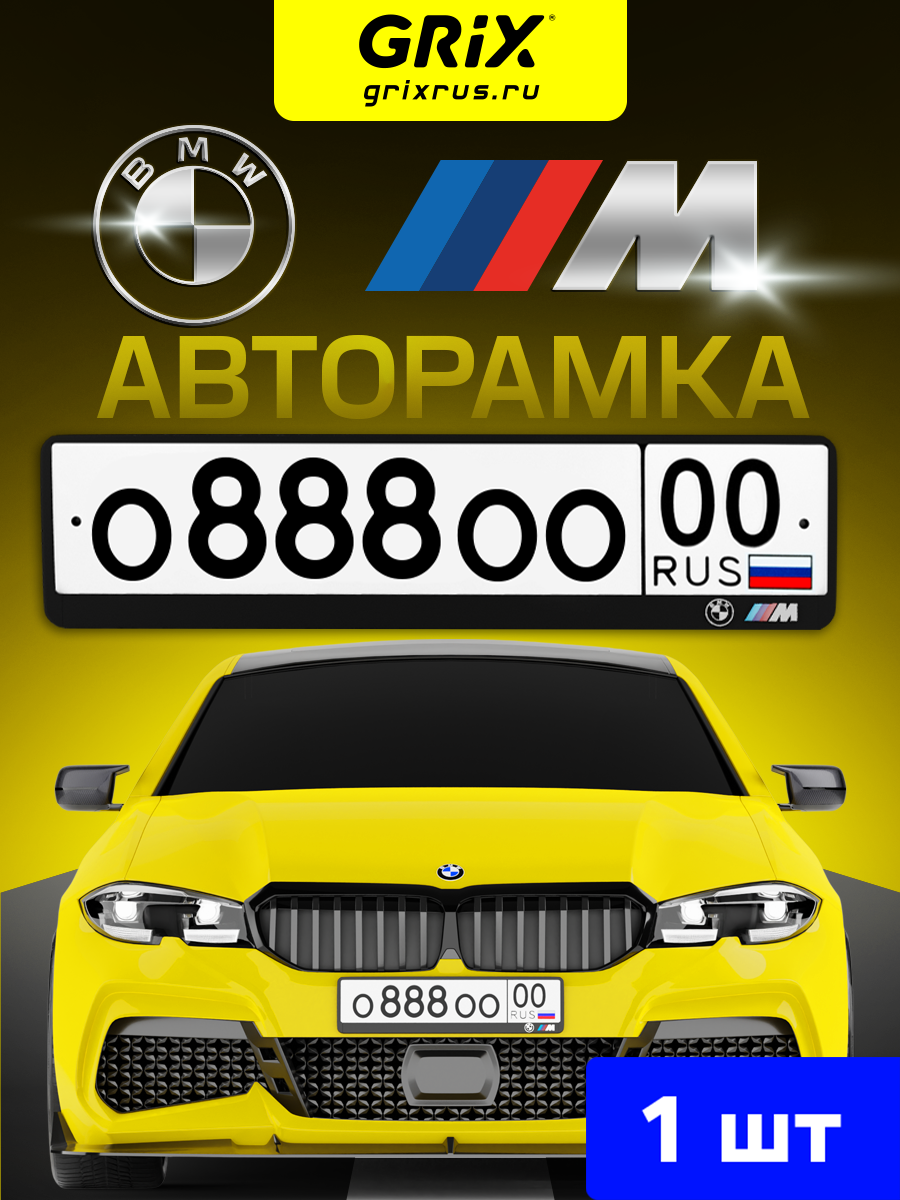 10 цен на Grix Рамки автомобильные для госномеров с надписью "BMW ///M" 1 шт.