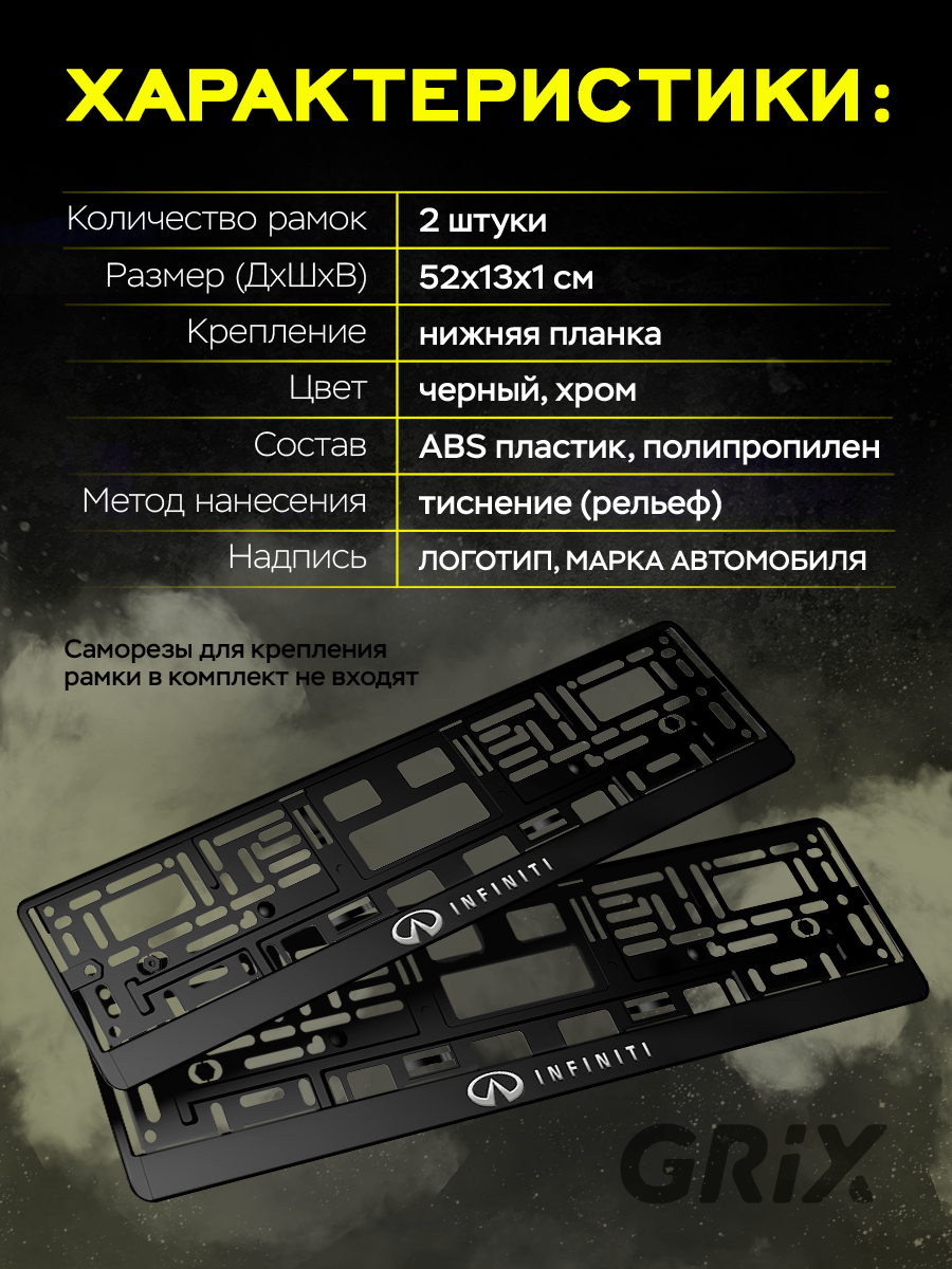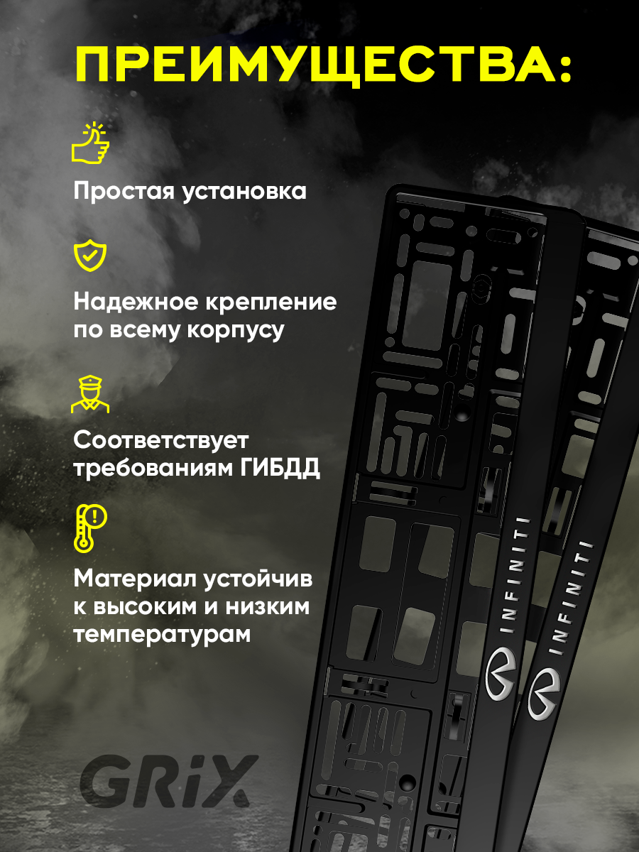 Grix Рамки автомобильные для госномеров с надписью "INFINITI" Набор - 2 шт. информация: