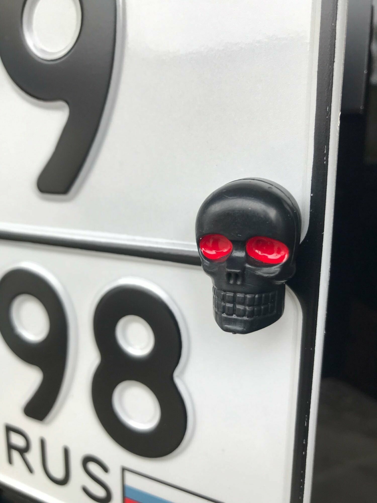 Отзывы на Болт крепления номерной рамки, череп черный матовый с красными глазами, набор 2 шт., для автомобиля, для мотоцикла