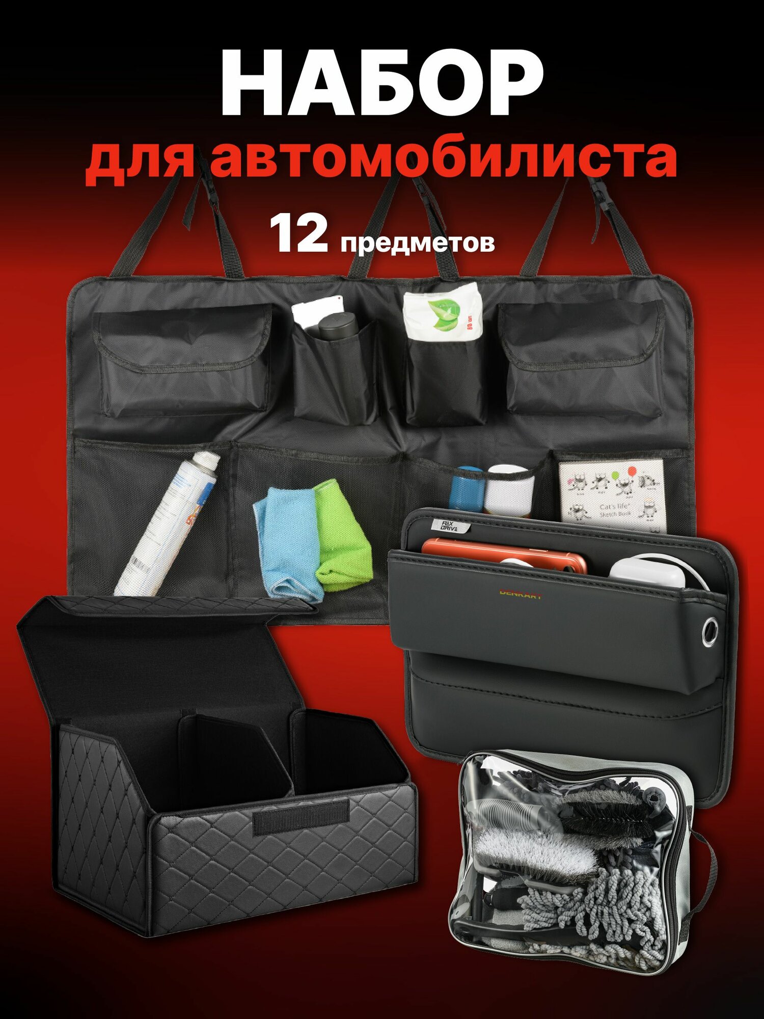 | Подробная комплектация | Органайзер в багажник складной - 1 шт, Органайзер в багажник на липучке - 1 шт, Органайзер между сиденьями - 1 шт, Набор для мойки авто - 9 шт |