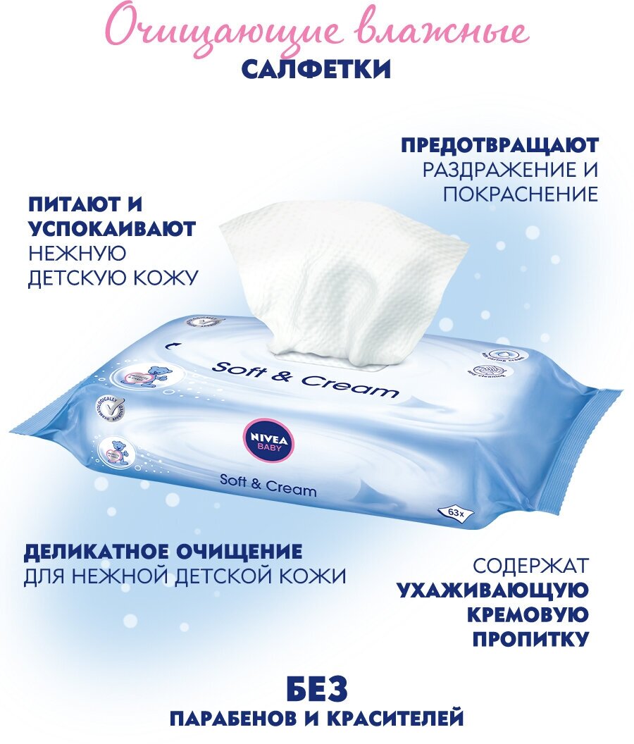 Очищающие влажные салфетки NIVEA Baby Soft&Cream, 63 шт. информация: