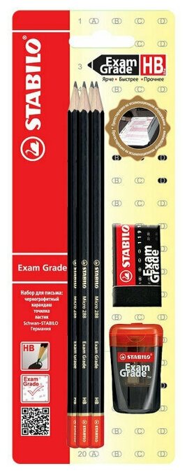Карандаши чернографитные Exam Grade 288 НВ, 4шт в наборе + ластик + точилка информация: