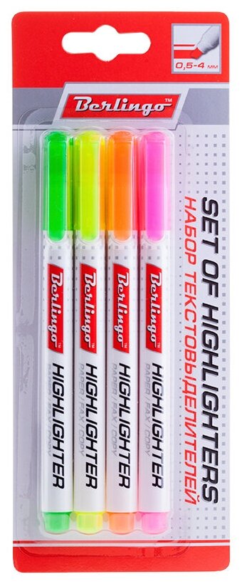 10 цен на Набор маркеров-текстовыделителей Berlingo Slim (0.5-4мм, 4 цвета) 4шт. (BTt_40109)