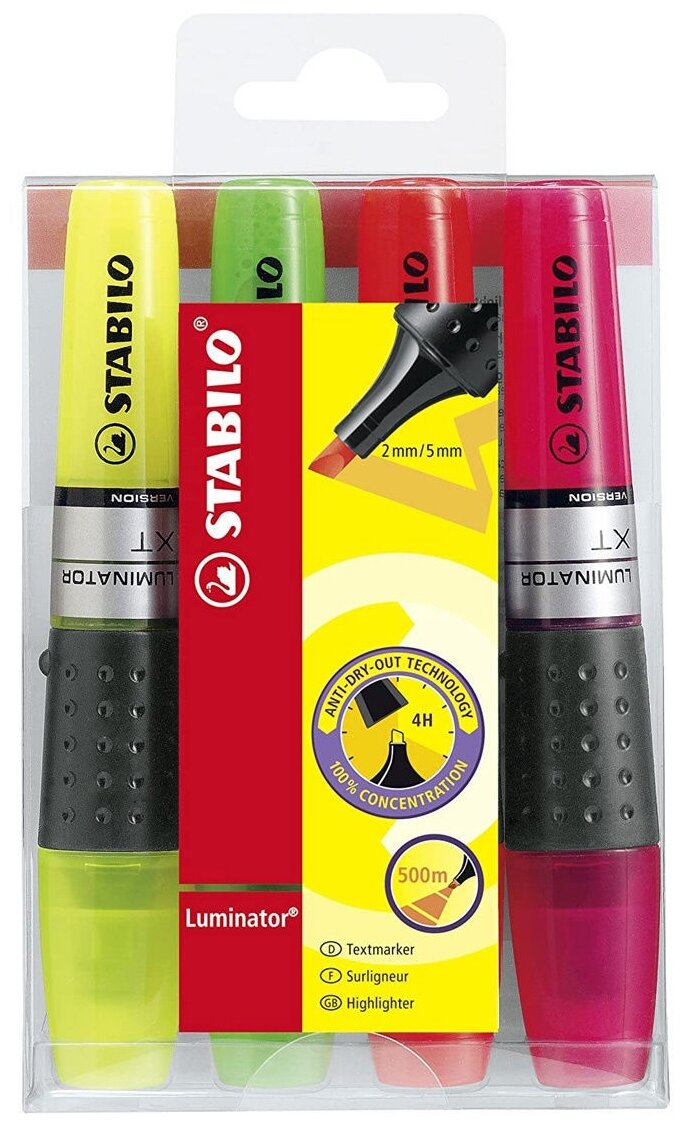 Отзывы на Набор маркеров-текстовыделителей STABILO LUMINATOR с системой жидких чернил, 4 цвета, 1-4мм