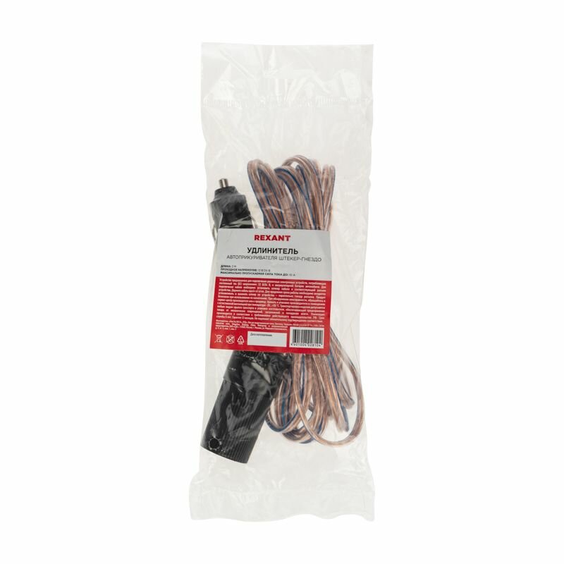 Удлинитель автоприкуривателя штекер-гнездо 1.5 м REXANT