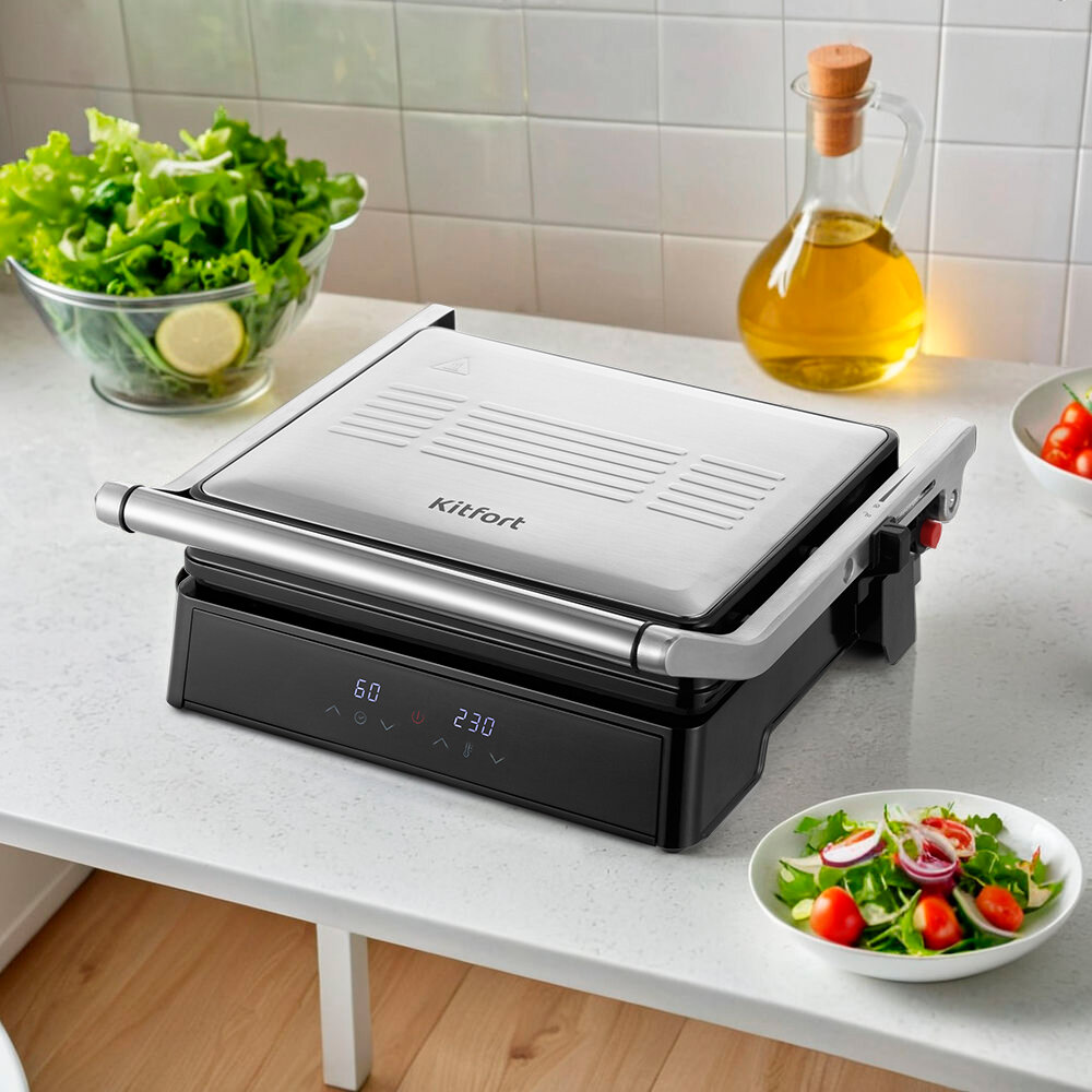 Электрогриль KitFort КТ-3664, серебристый и черный информация: