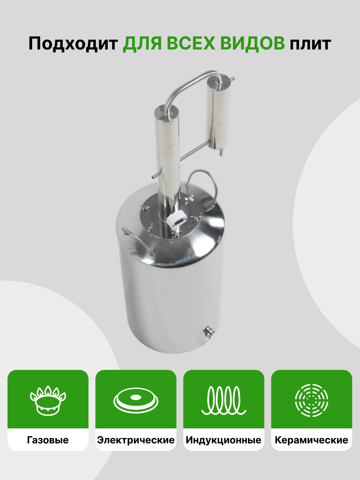 Дистиллятор Первач - Дачно-Деревенский 16, домашний 16л, охладитель, использ. без водопровода