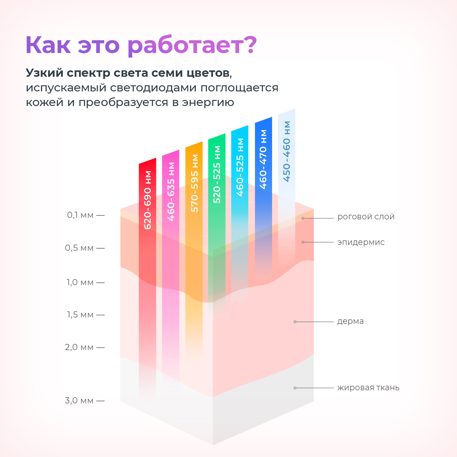 | Дополнительная информация | термотерапия и 7 режимов световой LED-терапии |