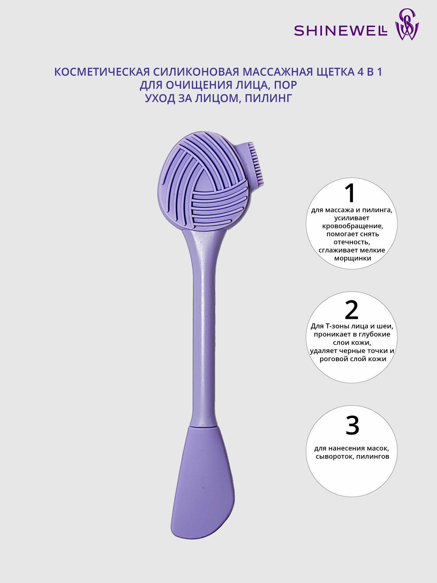 SHINEWELL Косметическая силиконовая массажная щетка 4 в 1 для очищения лица, пор. Уход за лицом, пилинг информация: