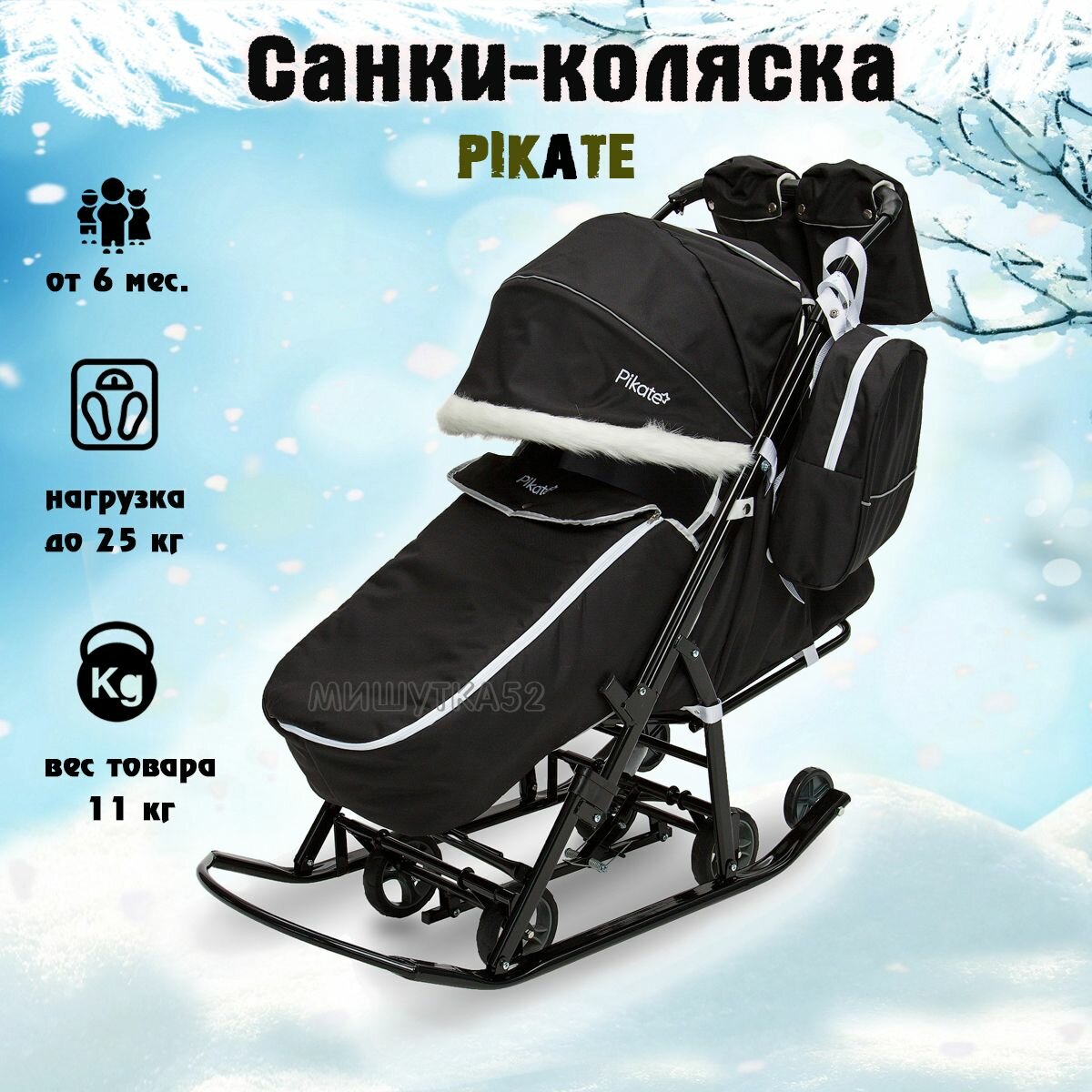10 цен на Санки-коляска Pikate Arctic выдвижные колеса, перекидная ручка, сумка для мамы, цвет Черный