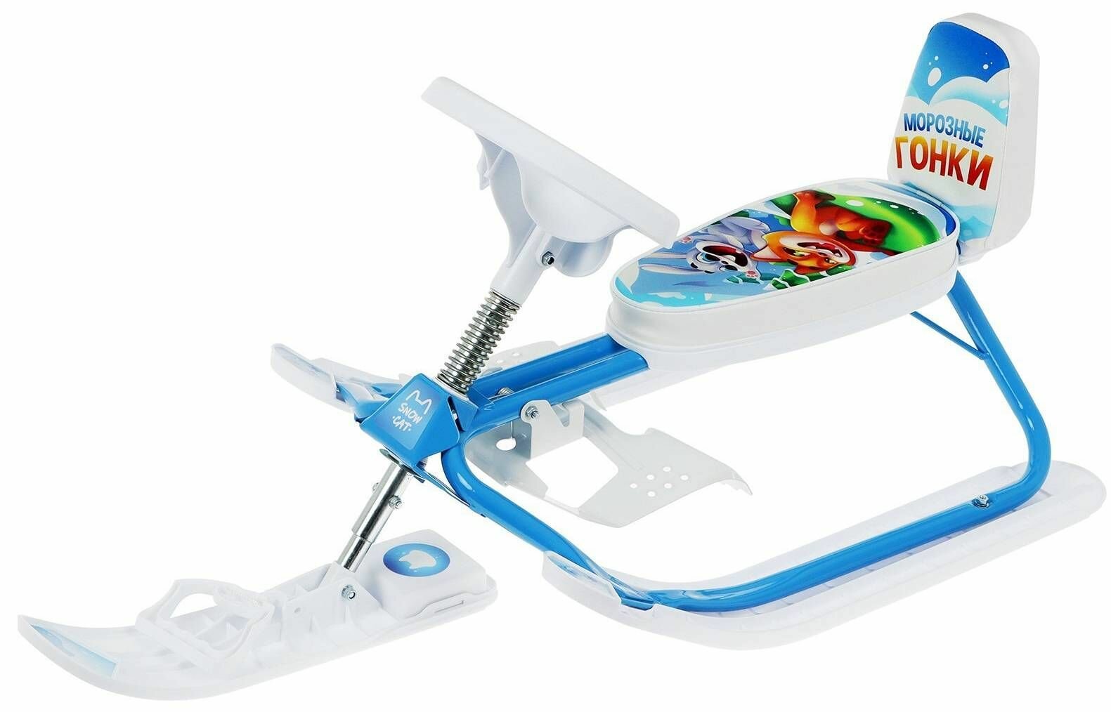 Детский снегокат растущий, зимние снежные санки для катания по снегу с мягким сиденьем и съемной спинкой, авторуль и буксировочный трос информация:
