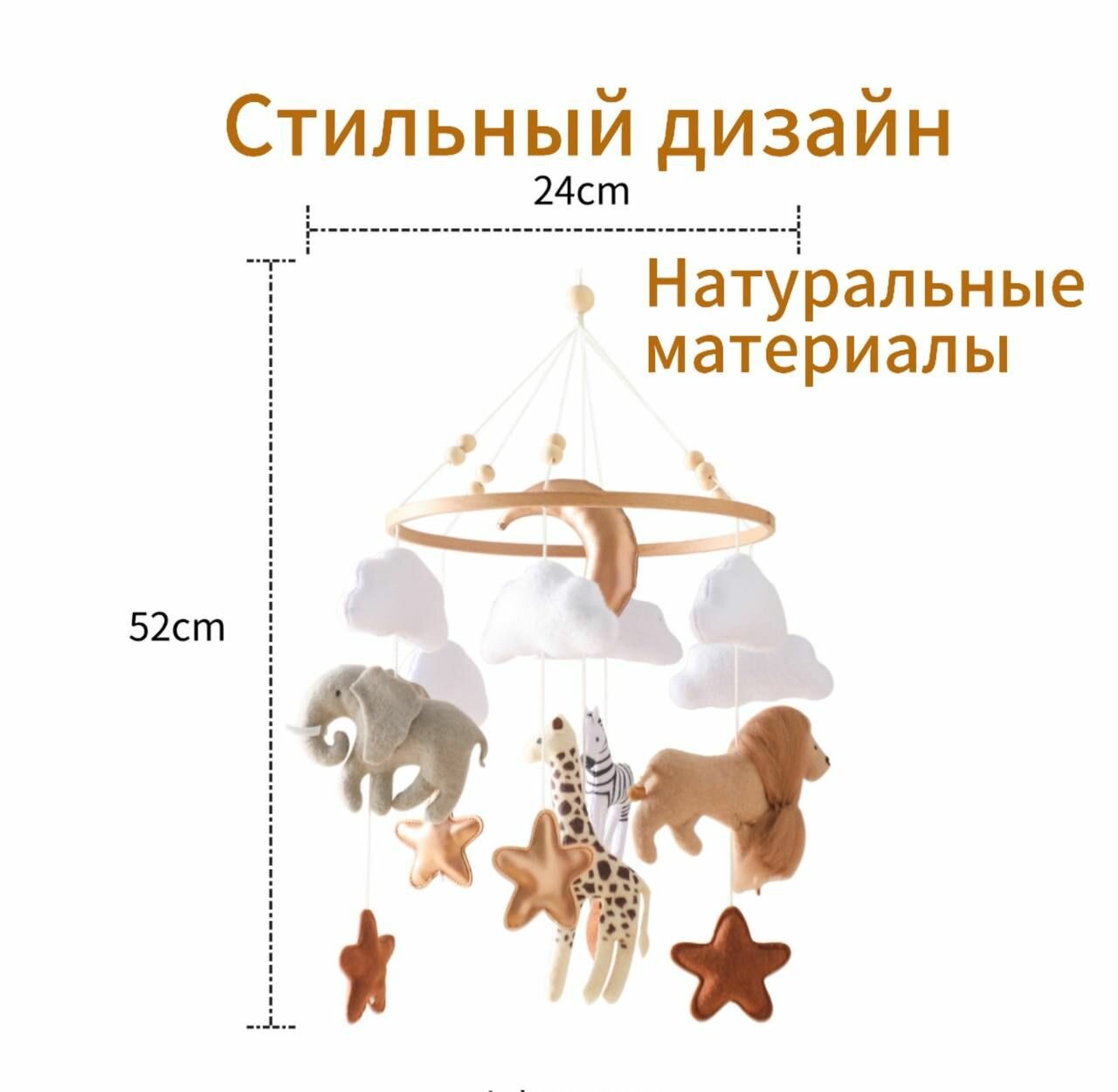 Мобиль на кроватку музыкальный для новорожденных и кронштейн из дерева-3