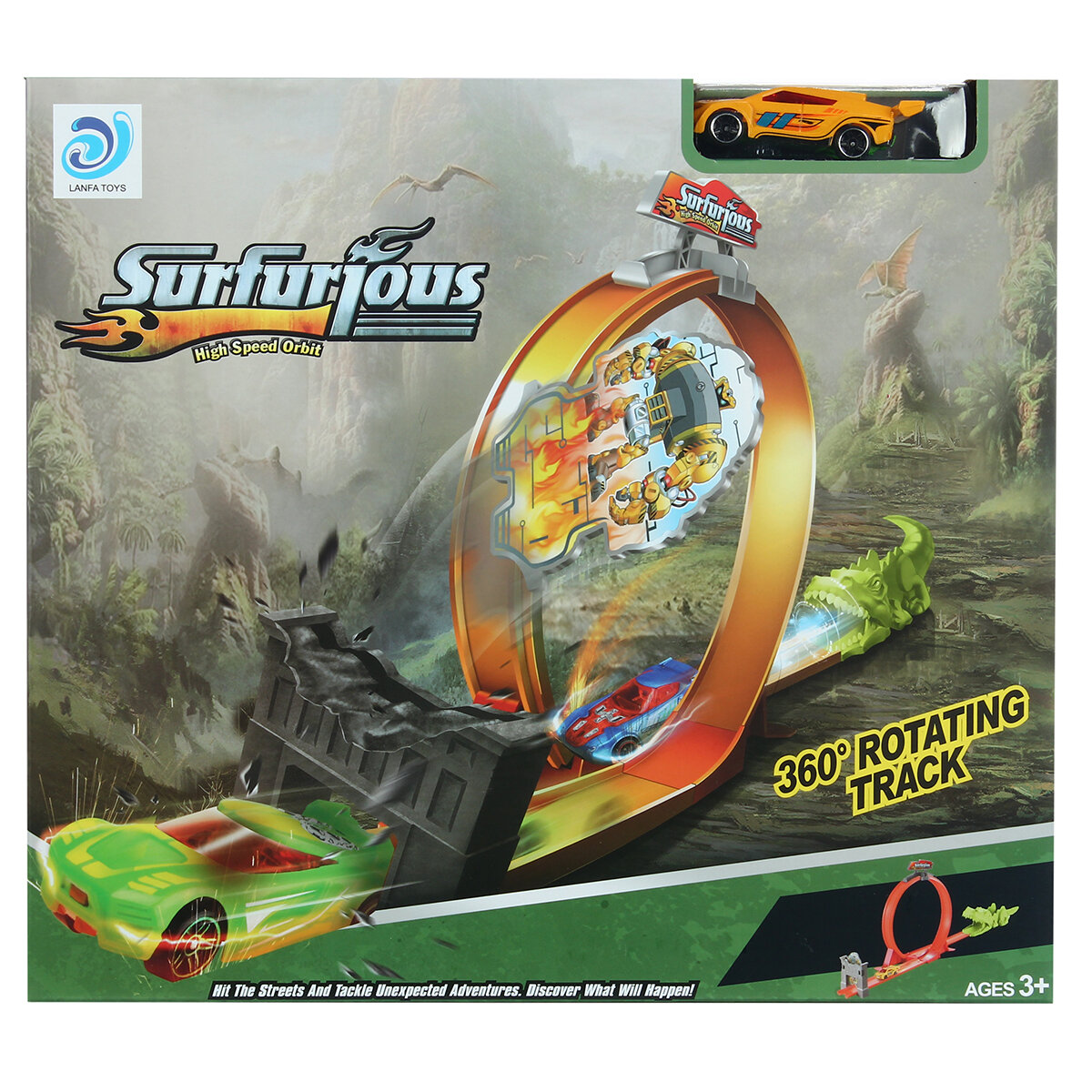 Автотрек с динозаврами и машинками Скоростной спуск для мальчиков, аналог хот виллс