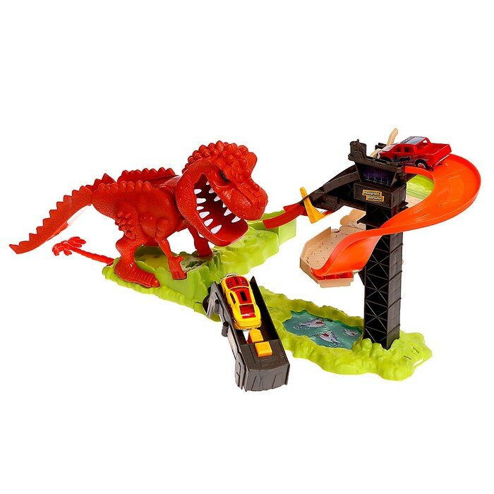 Автотрек с динозаврами и машинками Скоростной спуск для мальчиков, аналог хот виллс