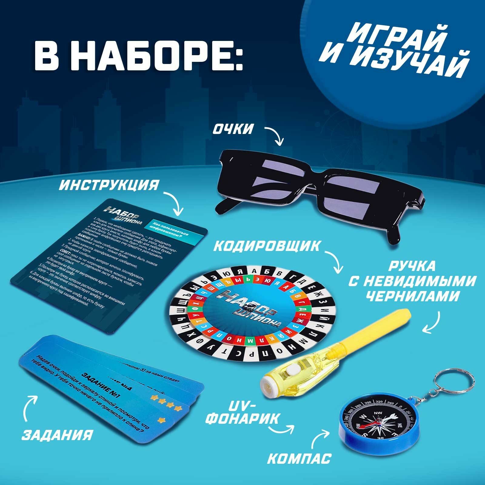 Набор шпиона «Секретная серия», очки заднего видения, шифровщик, компас и задания информация: