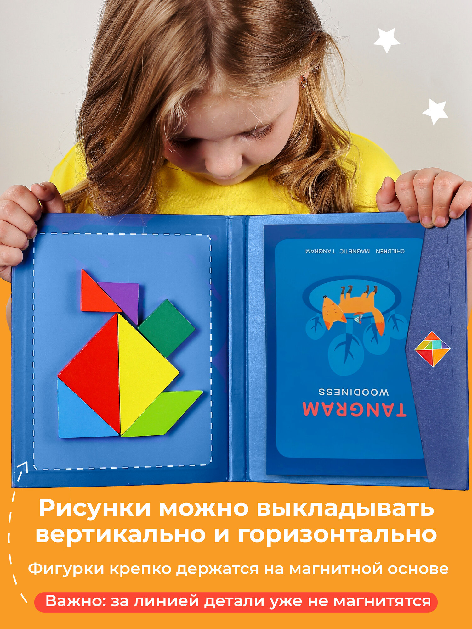 10 цен на Танграм магнитный с заданиями, Kids Zone, Головоломка для детей / Детский tangram, Синий