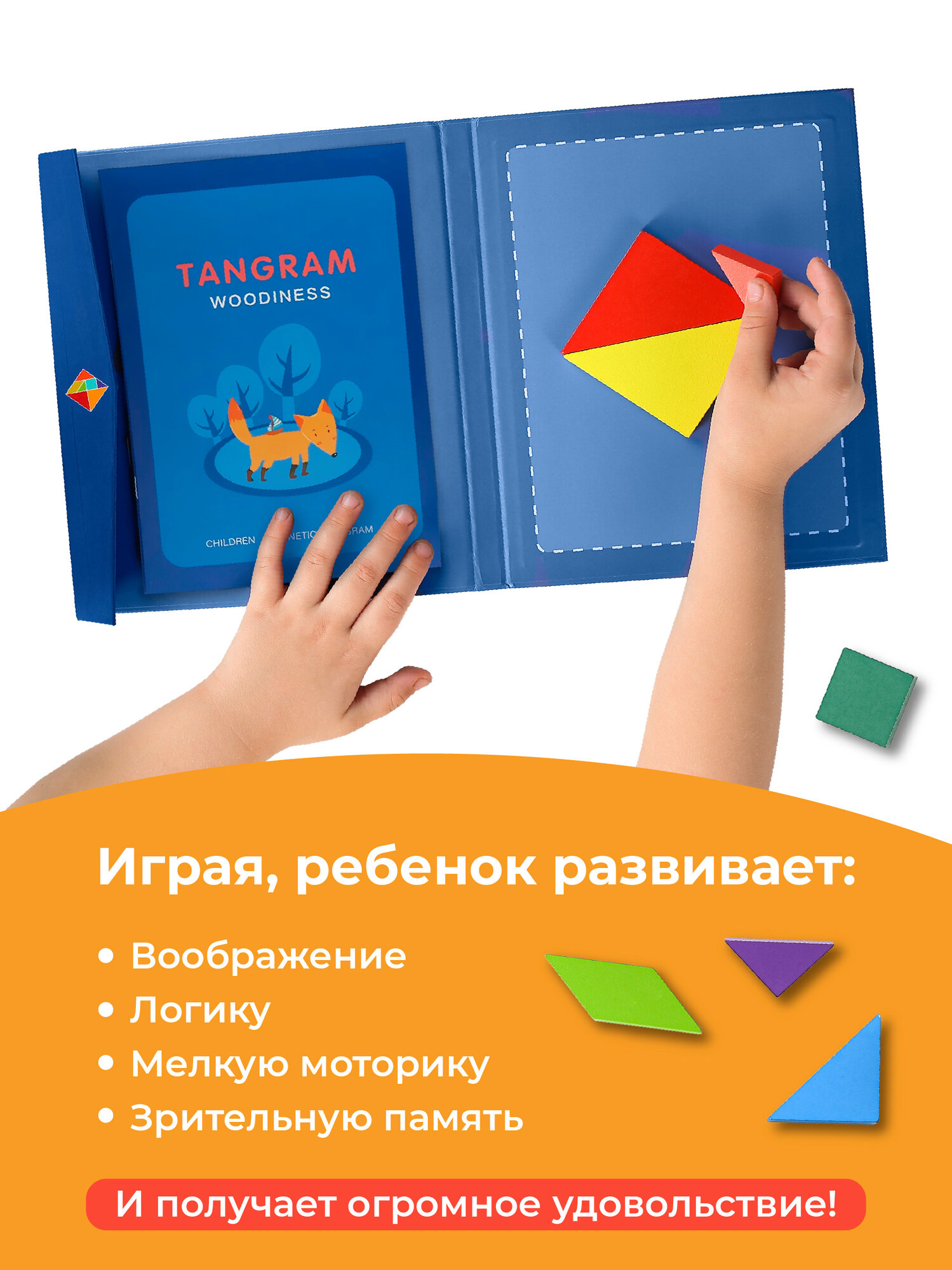 Отзывы на Танграм магнитный с заданиями, Kids Zone, Головоломка для детей / Детский tangram, Синий
