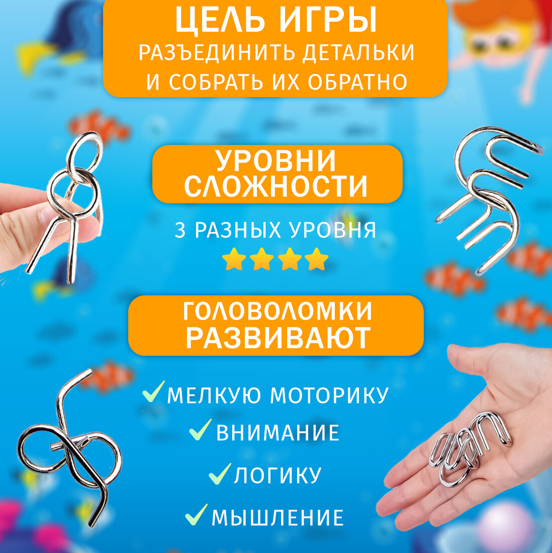 Набор Головоломки металлические "Подводная жизнь" N 1/3, подарочный набор из 8 шт. для детей и взрослых 335 ₽