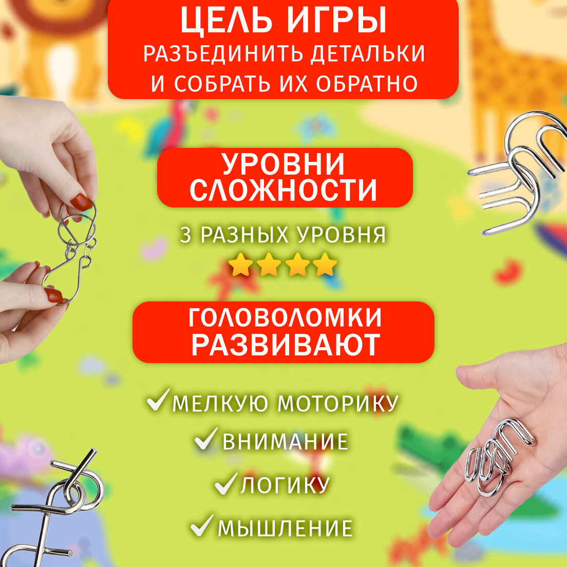 Набор Головоломок Зоопарк N 1/3 для детей и взрослых, подарочный набор, для развития логики, мелкой моторики 23 февраля, 8 марта информация:
