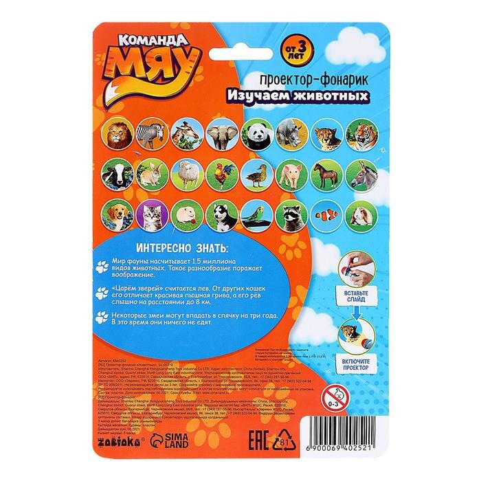 Проектор-фонарик «Команда Мяу: Изучаем животных» информация: