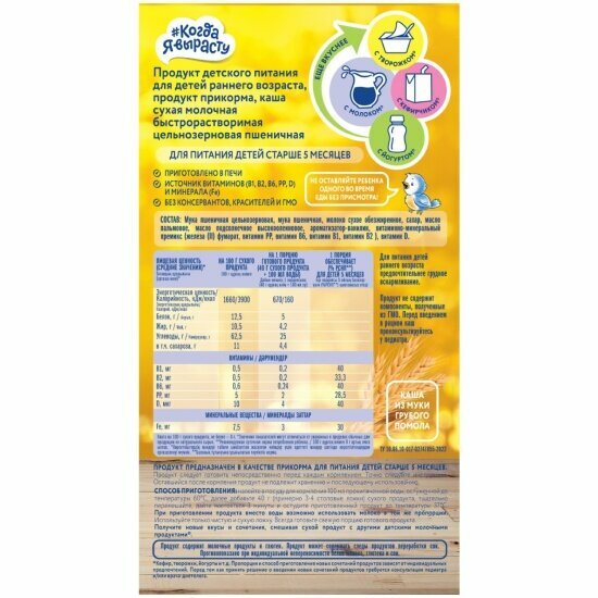Каша печёная Когда Я Вырасту пшеничная цельнозерновая с 5 мес 200гр информация:
