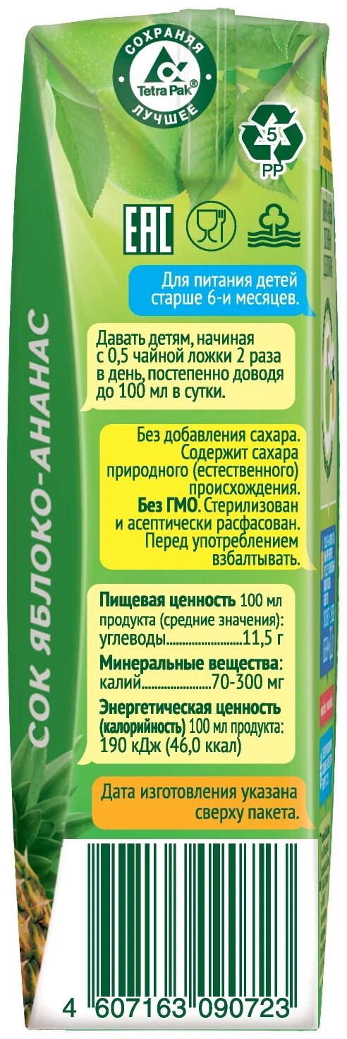 | Состав | концентрированный яблочный сок, концентрированный ананасовый сок |