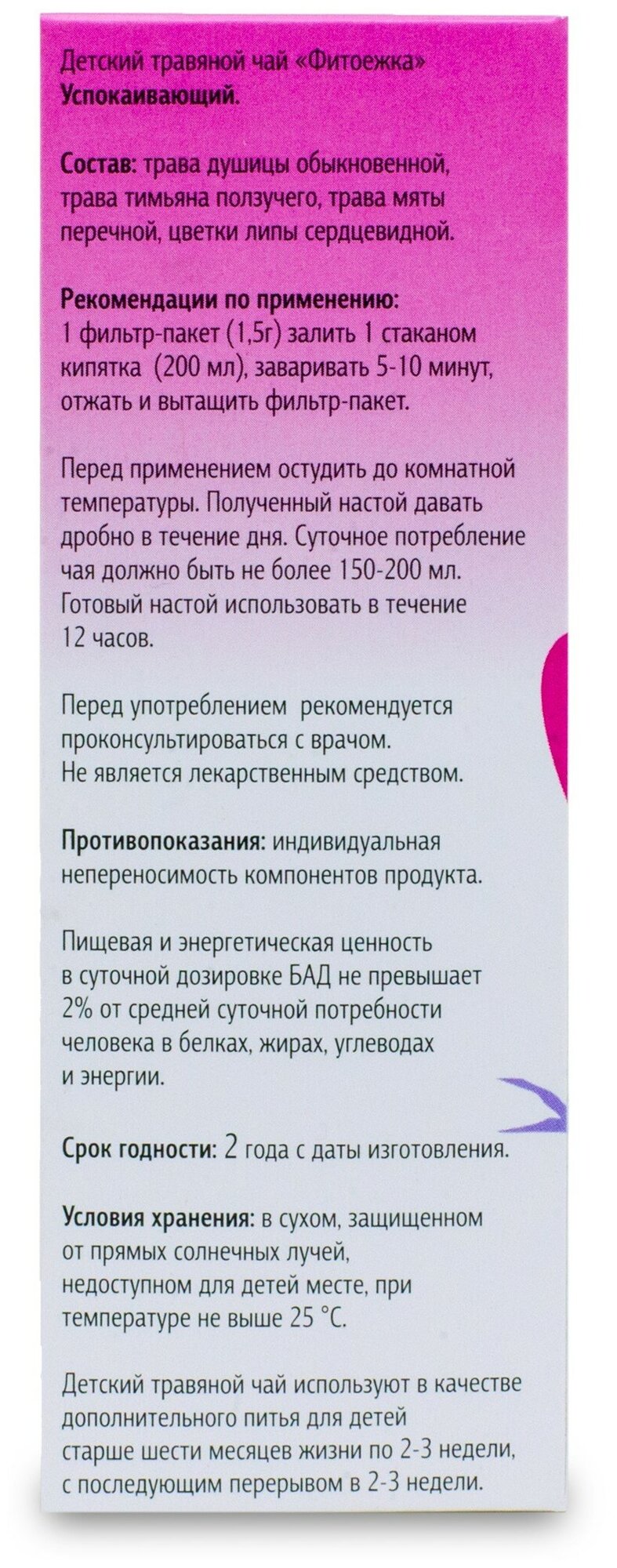 Детский травяной чай "Фитоежка" "Успокаивающий", ф/п по 1,5 г №20. информация: