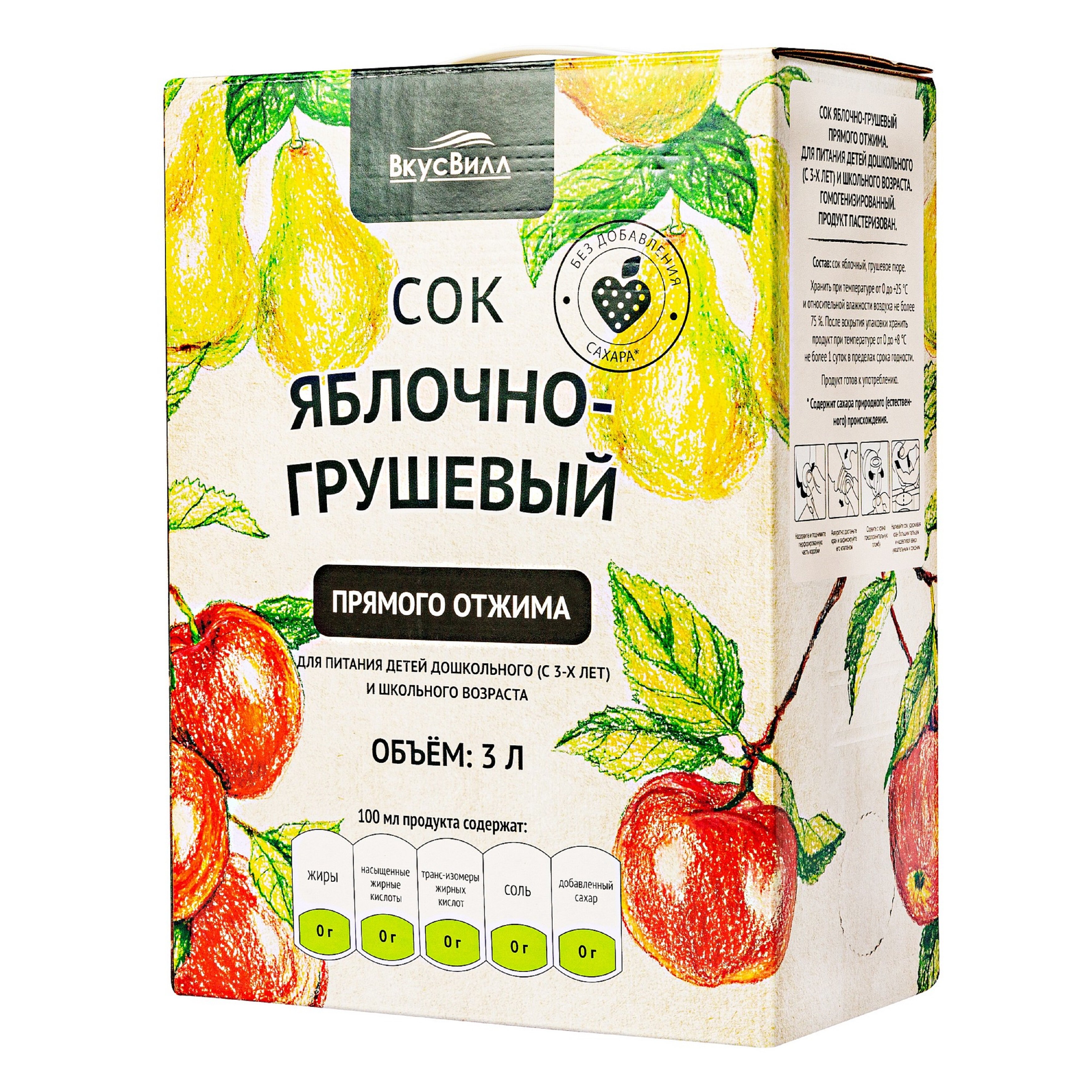 Сок Вкусвилл яблочно-грушевый 3 л информация: