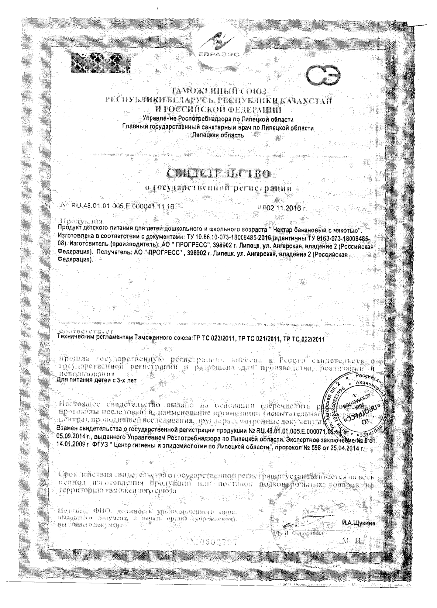 Нектар из бананов с мякотью "ФрутоНяня" 0,5 мл 6 шт информация: