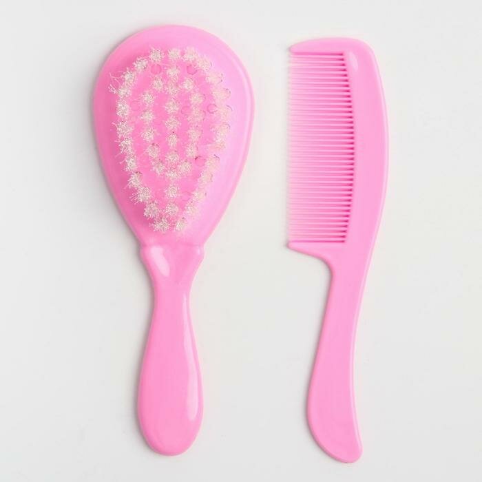 Набор детский для ухода за волосами: расческа и щетка с натуральной щетиной , цвет белый/розовый (1шт.)