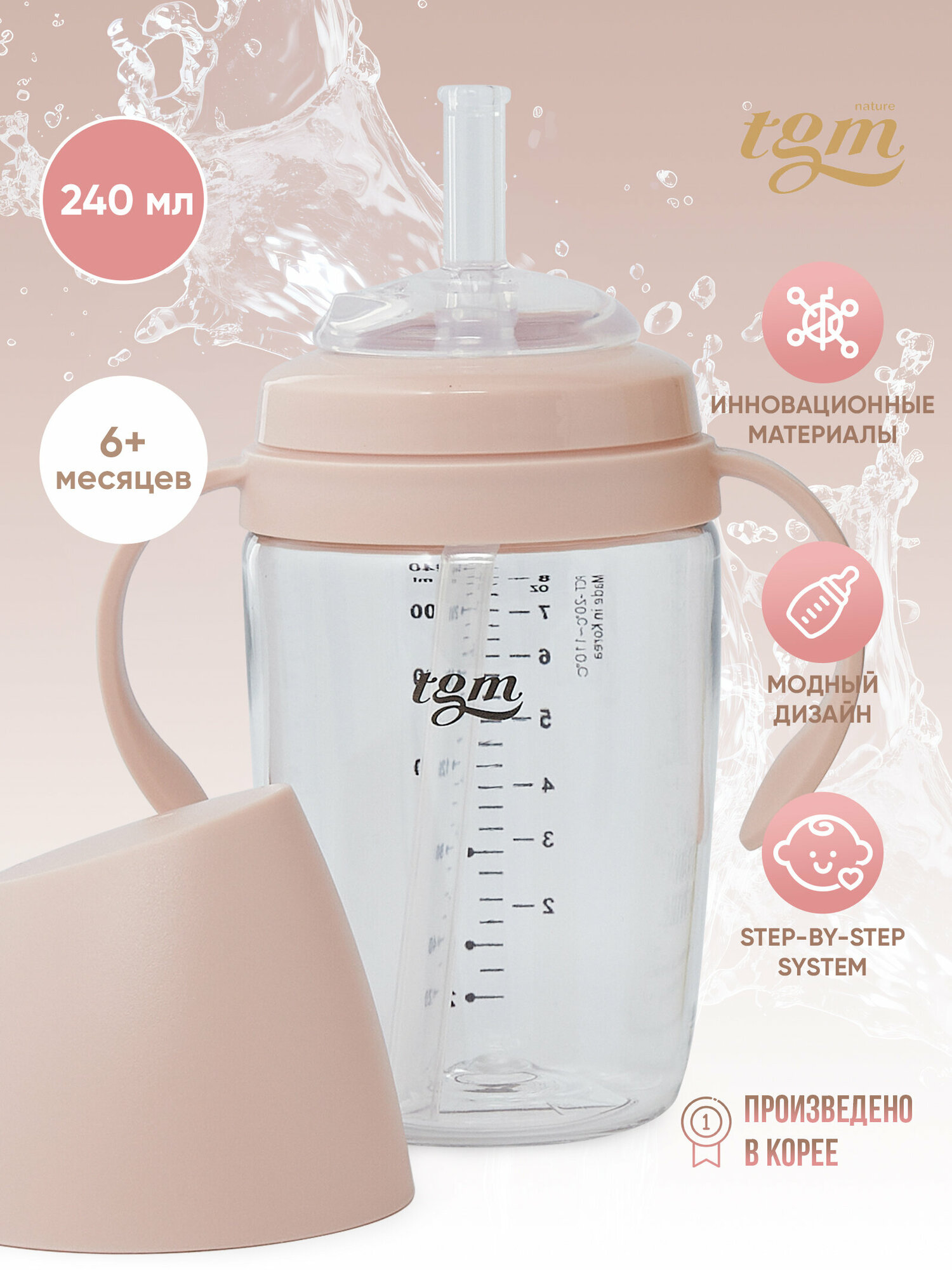 Поильник детский TGM Rice Grain Tritan 240 мл, coral pink информация: