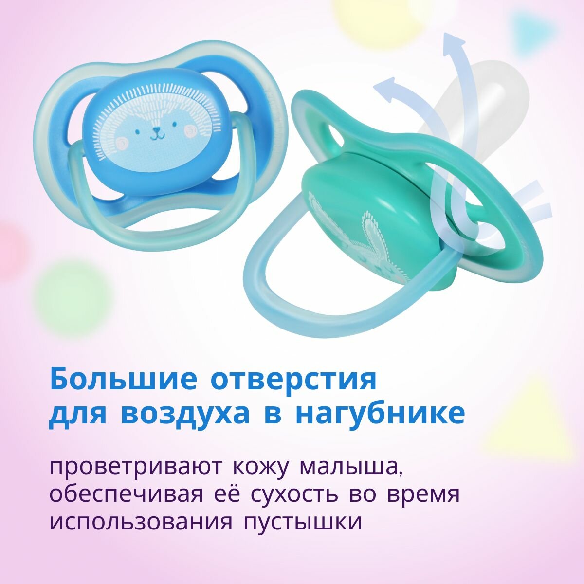 Силиконовые пустышки Philips Avent SCF344/23 ultra air 2 шт, с широкими воздушными отверстиями, контейнером для стерилизации, синий/зеленый информация: