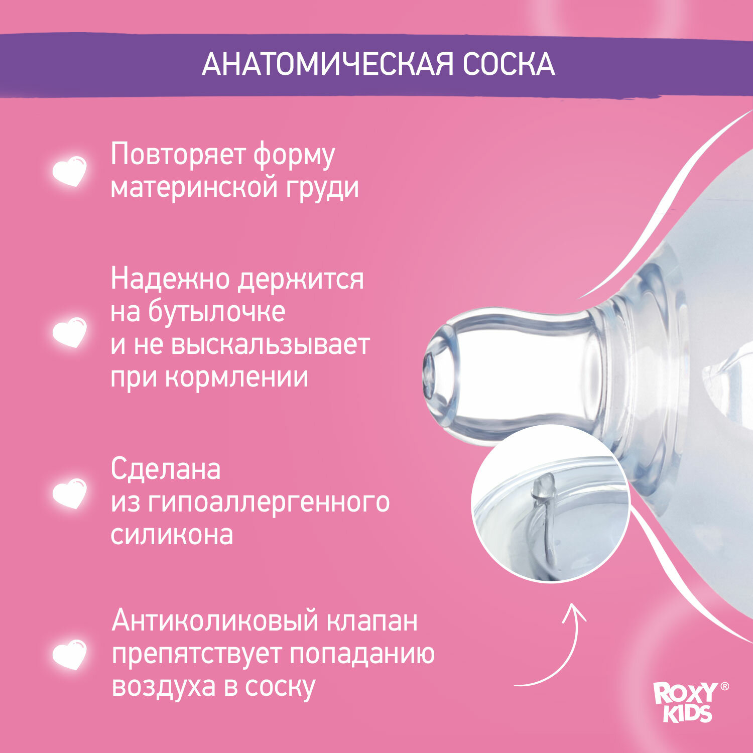 Отзывы на Сменные силиконовые соски от ROXY-KIDS для бутылочек 2 шт, средний поток, 3мес+