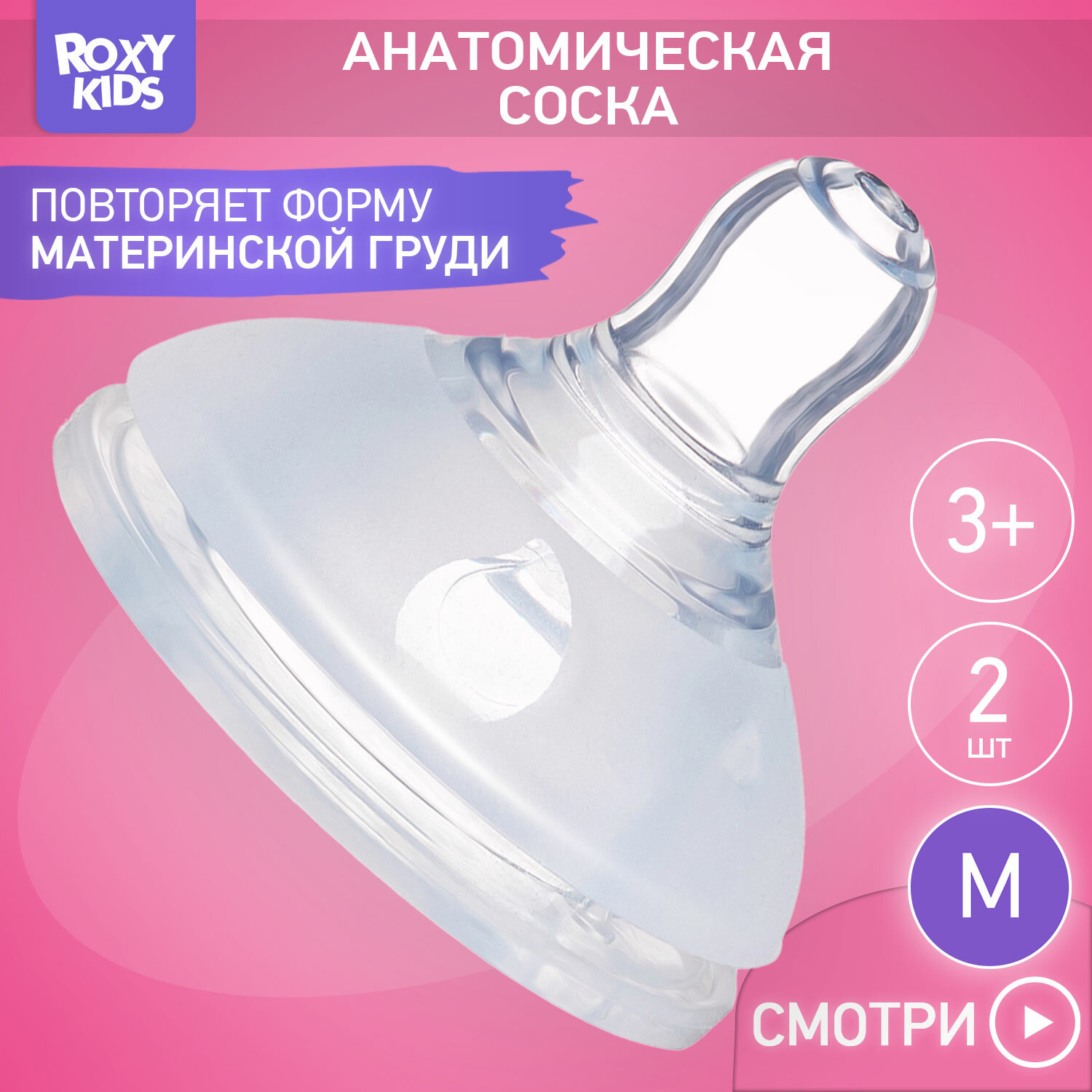 10 цен на Сменные силиконовые соски от ROXY-KIDS для бутылочек 2 шт, средний поток, 3мес+